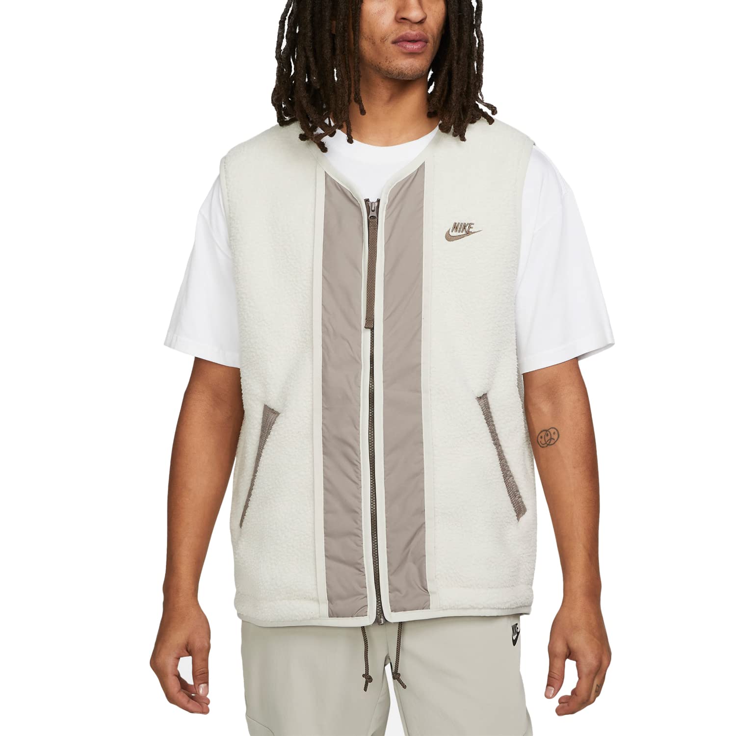 Nike Sportswear Sport Essentials+ Men's High-Pile Fleece Vest (Large, Light Bone/Moon Fossil/Ironstone)