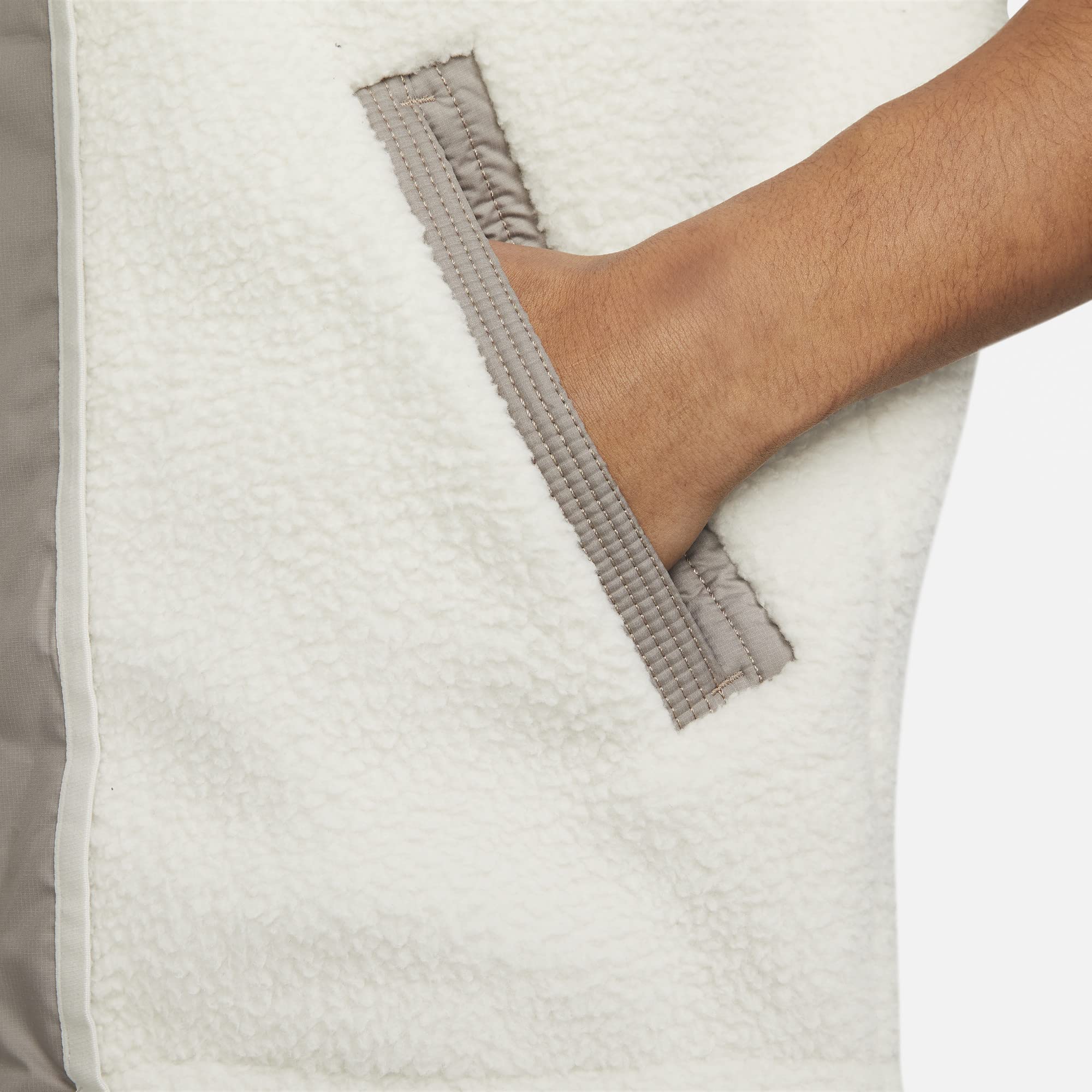 Details: Warm up with the wildly comfortable Nike Sportswear High-Pile Fleece Vest. Made with super fluffy and warm fleece, it delivers an ultrasoft feel perfect for cold-weather layering. Recycled ripstop fabric adds durability and a smooth feel to the front zipper and pockets. This product is made with 100% recycled polyester fibers.