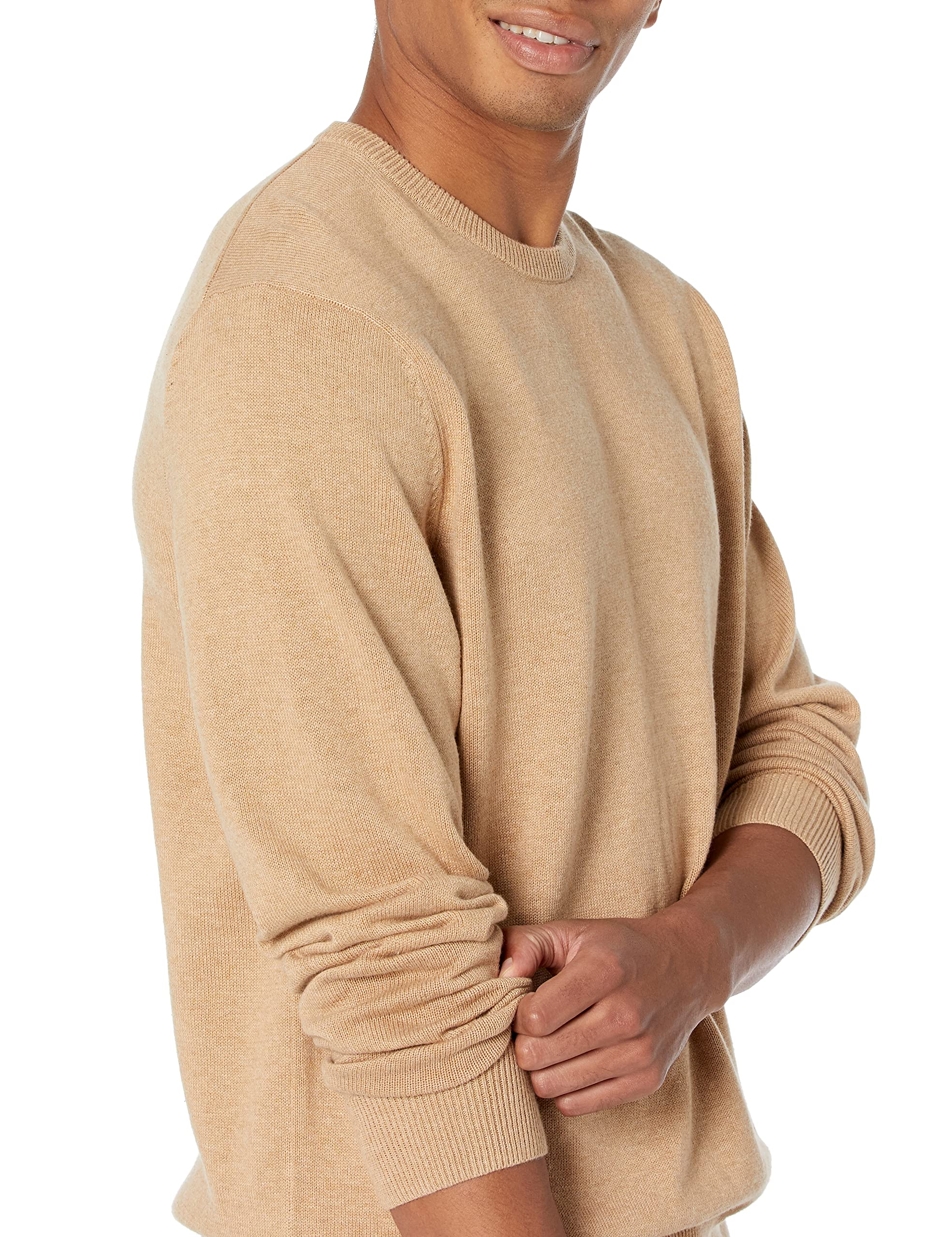 Amazon Essentials Men's Long-Sleeve Crewneck Sweater, 100% Cotton, Big & Tall Options Available, Camel Heather, XX-Large
