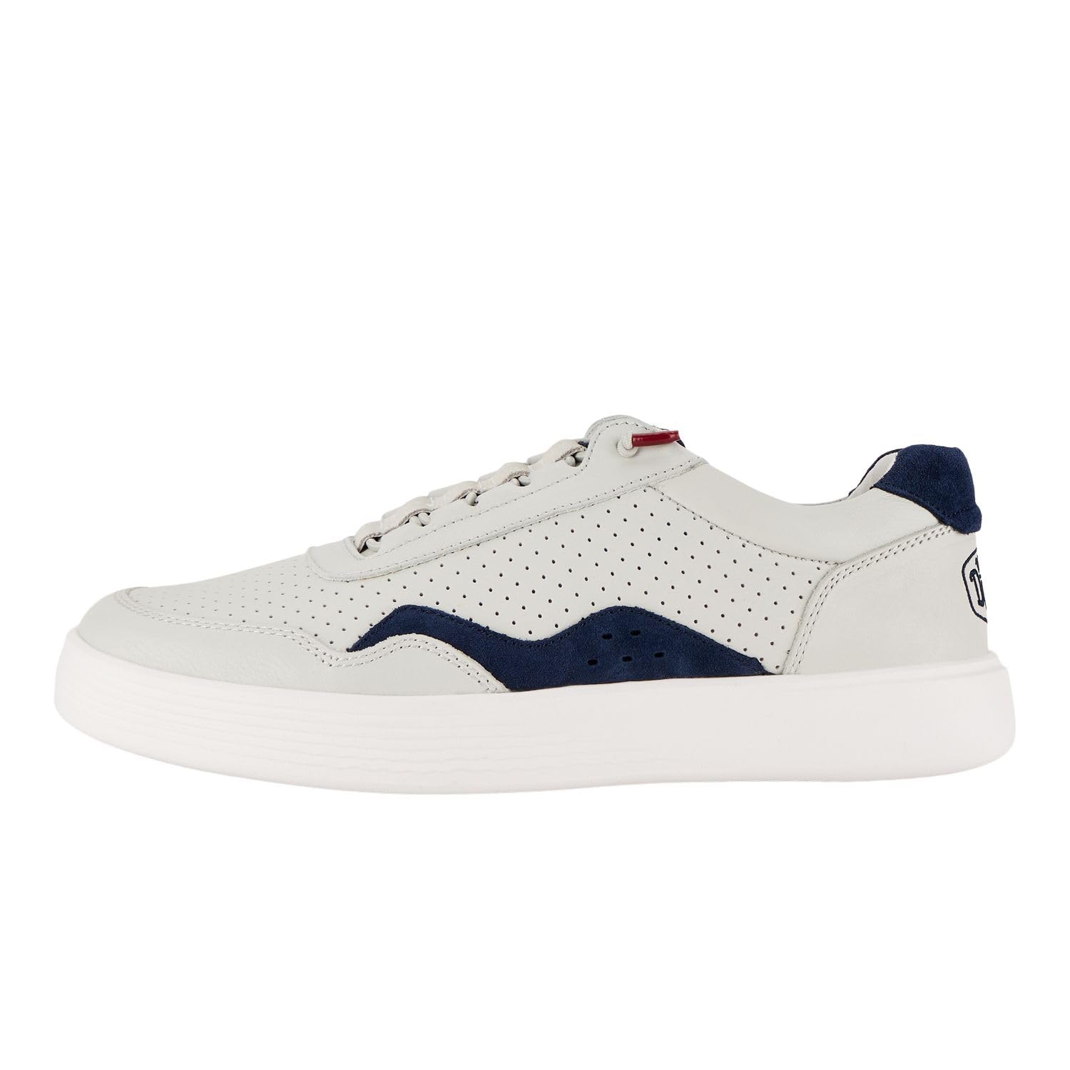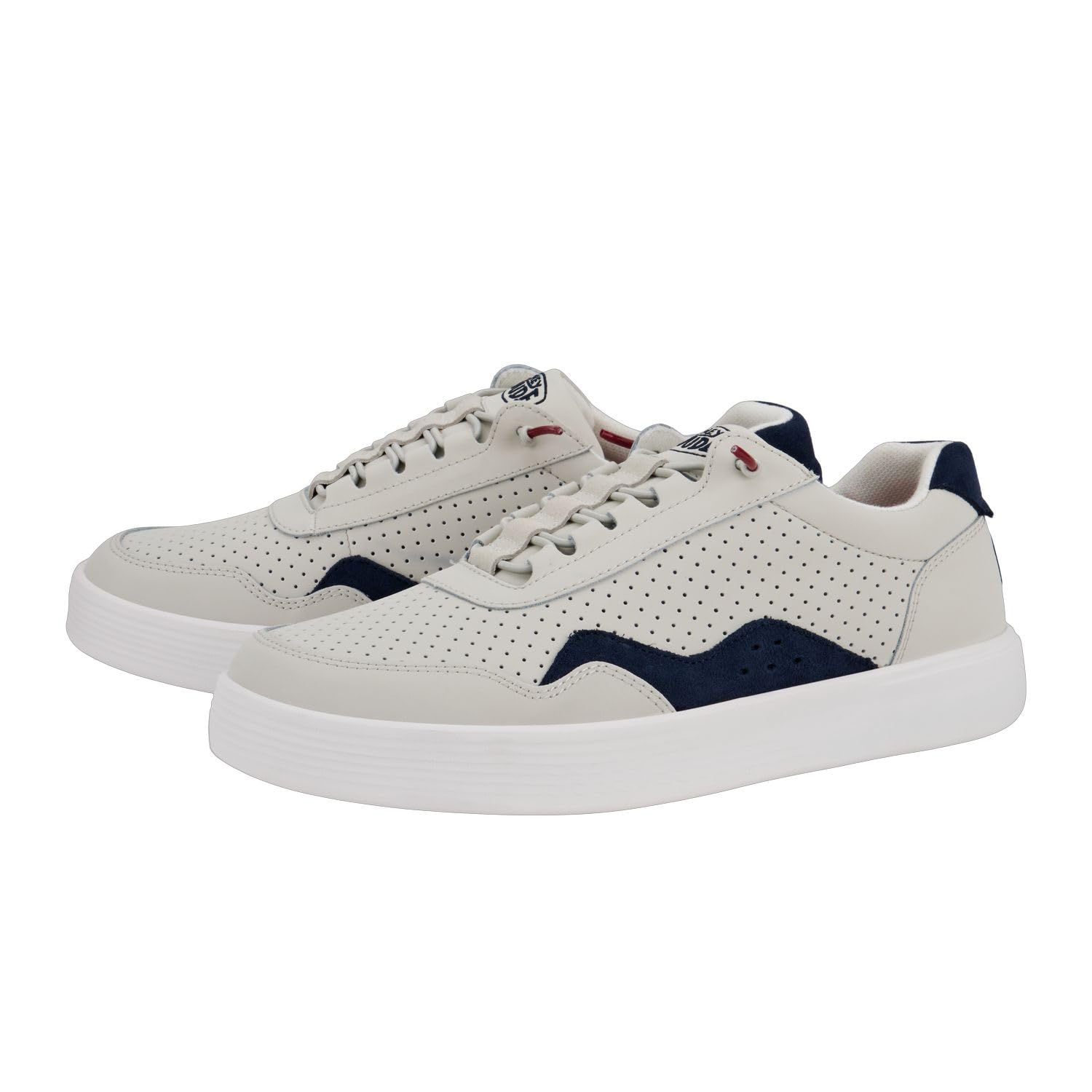 HEYDUDE Men's Hudson M Leather Light Grey/Navy Size 15 | Men's Shoes | Men Slip-on Sneakers | Comfortable & Light-Weight