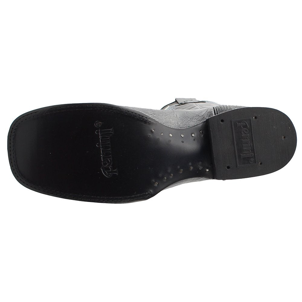 Ferrini Men's Taylor Teju Lizard Square Toe Leather Heeled Western Boots, Black, 11