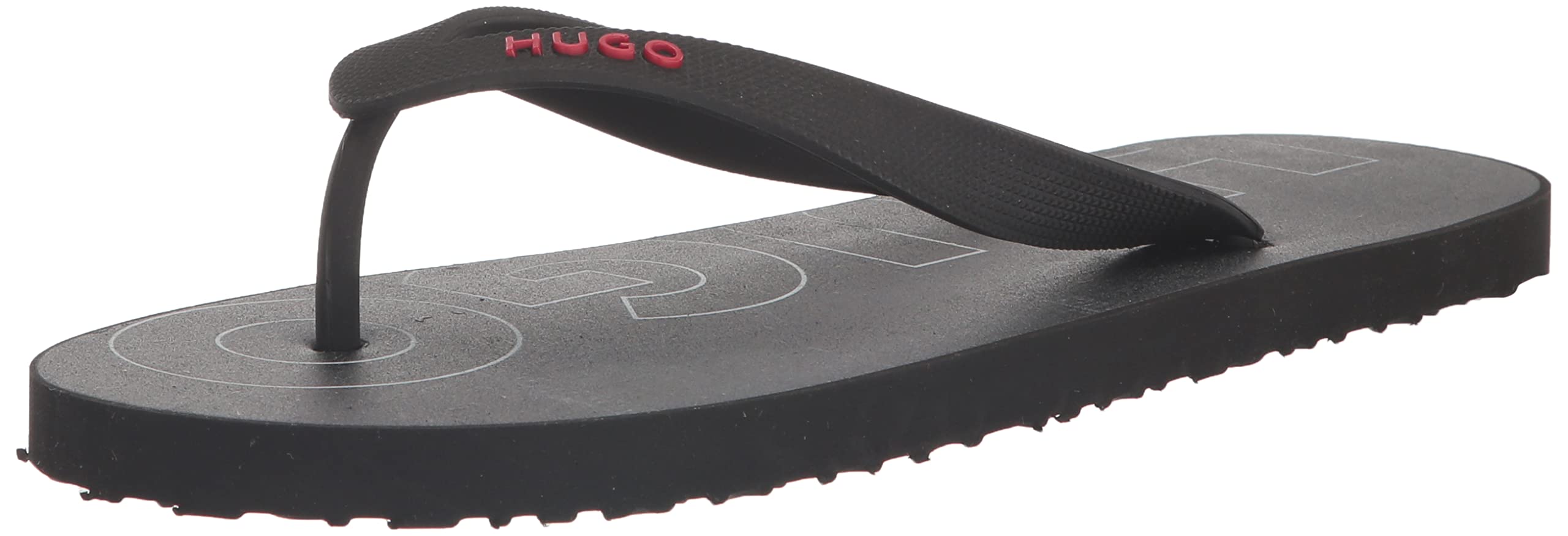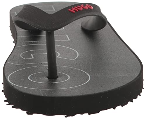 HUGO Mens Bold Logo Denim Print Flip-Flop, Charcoal Denim, 12 US