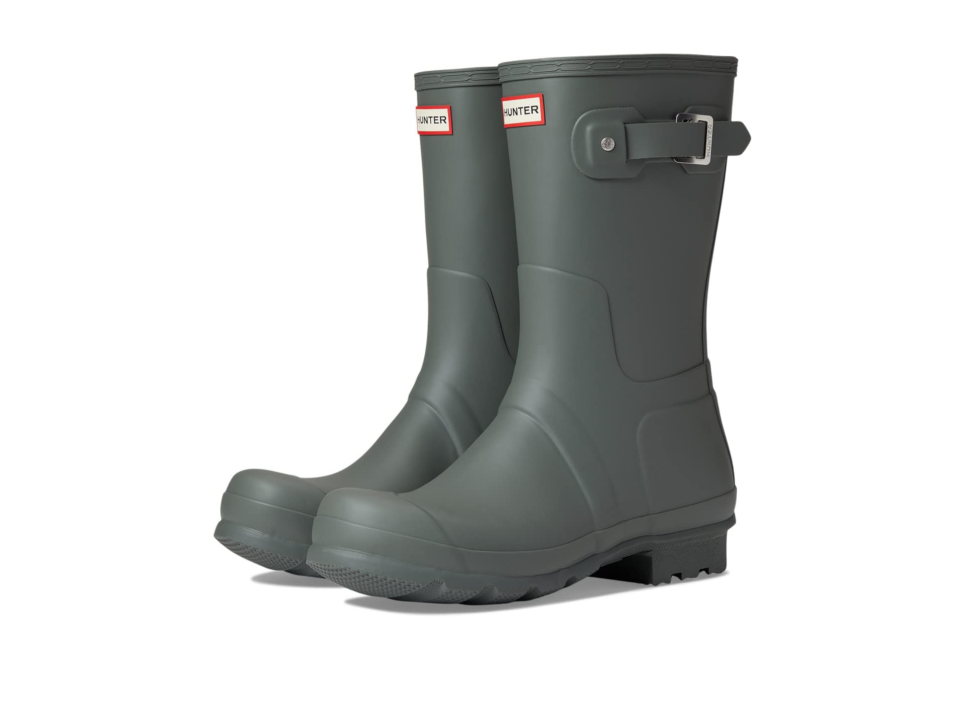- CLASSIC DESIGN: Easy to pass through the Hunter Original Short Rain Boot, to get back to town and the country. It features a round toe, matte finish, and a high rise ankle length boot with the Hunter logo on the front