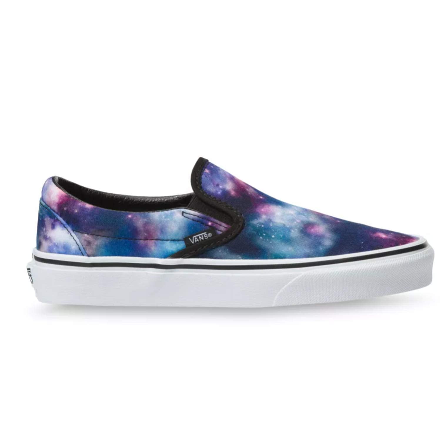 Details: Bask in the galactic glory of the Slip-On Galaxy and white skate shoes from Vans! A purple and blue nebula pattern appears across the upper for a strikingly colorful look. Vans' classic cushioned construction in the insole and midsole ensure plenty of all-day comforts, while the blue nebula pattern takes your style straight to outer space.