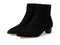 These black suede booties have a round, playful heel.