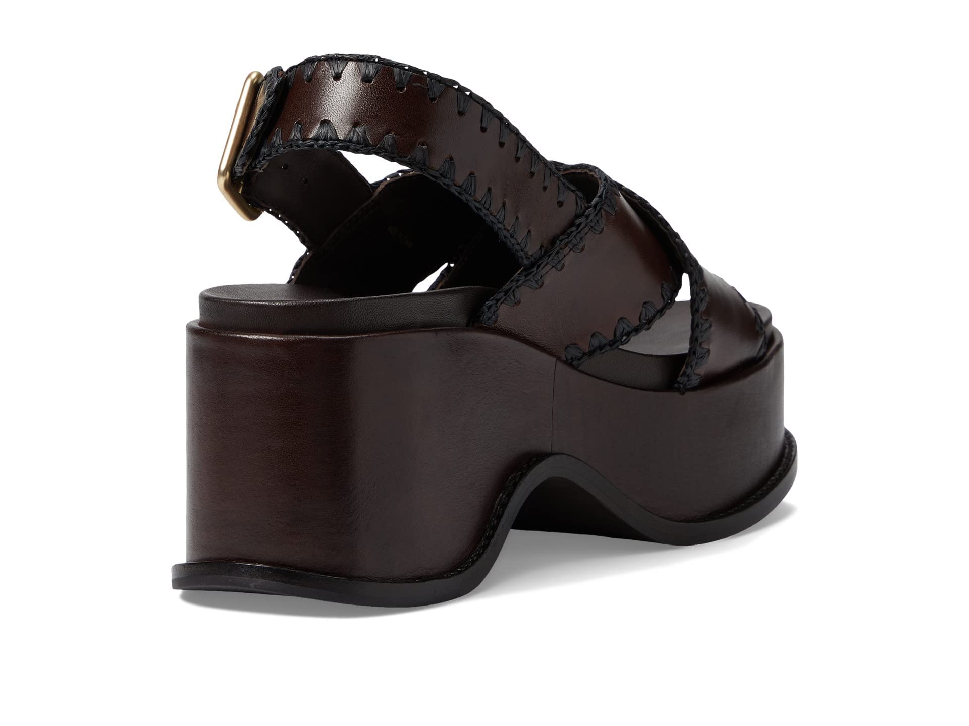 The Loeffler Randall Mae Wedge Heels are distinguished with whipstitch detailing that avoids hurting your toe from pointed lines of upper crisscross straps. Bovine leather upper. Leather lining and insole. Adjustable slingback strap closure. Platform heel. Open round toe. Bovine leather outsole.