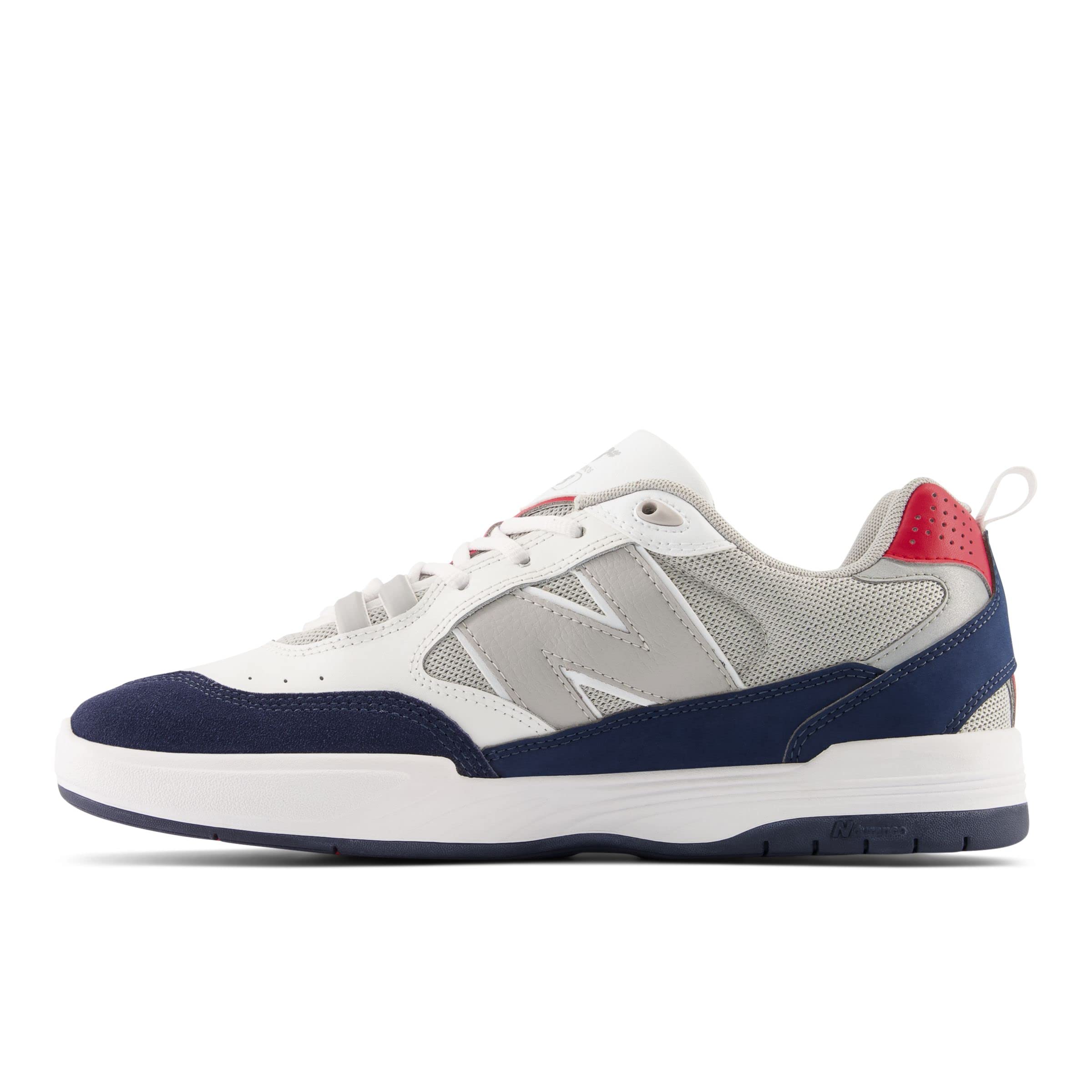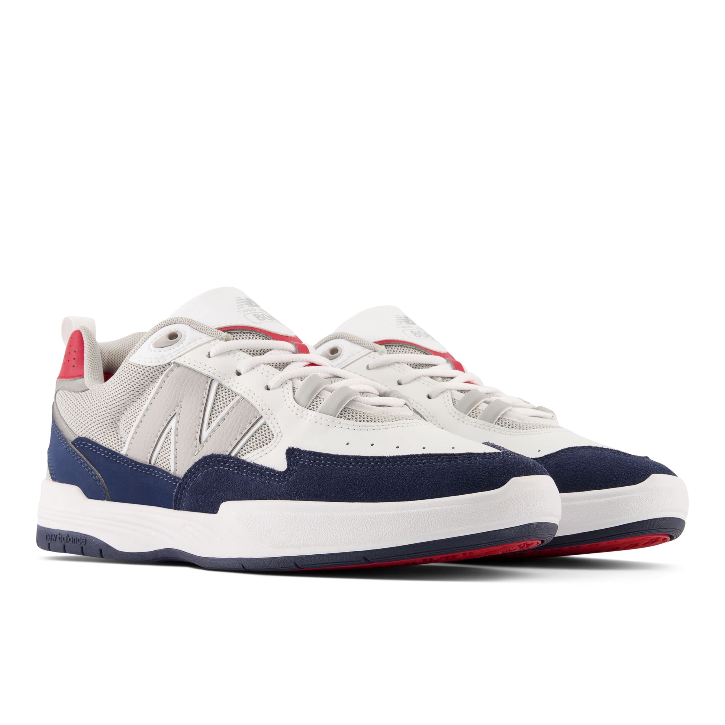 The New Balance Numeric 808 - Tiago Lemos by Tiago Lemos is the newest addition to the NB Numeric line. Tiago's second signature model for New Balance features late-90's styling with modern NB technology. Full-length ABZORB midsole, lace ghillies, NDurance outsole and a layered upper are complemented by exaggerated N branding, giving the 808 a unique look. Additional features like the re-designed internal heel pod keep the foot locked in and secure. The 808 provides both comfort and durability, with Tiago's distinct aesthetics. Leather and textile upper. Textile lining and insole. Traditional lace-up closure. Removable insole. Pull tabs for added comfort. Synthetic outsole.