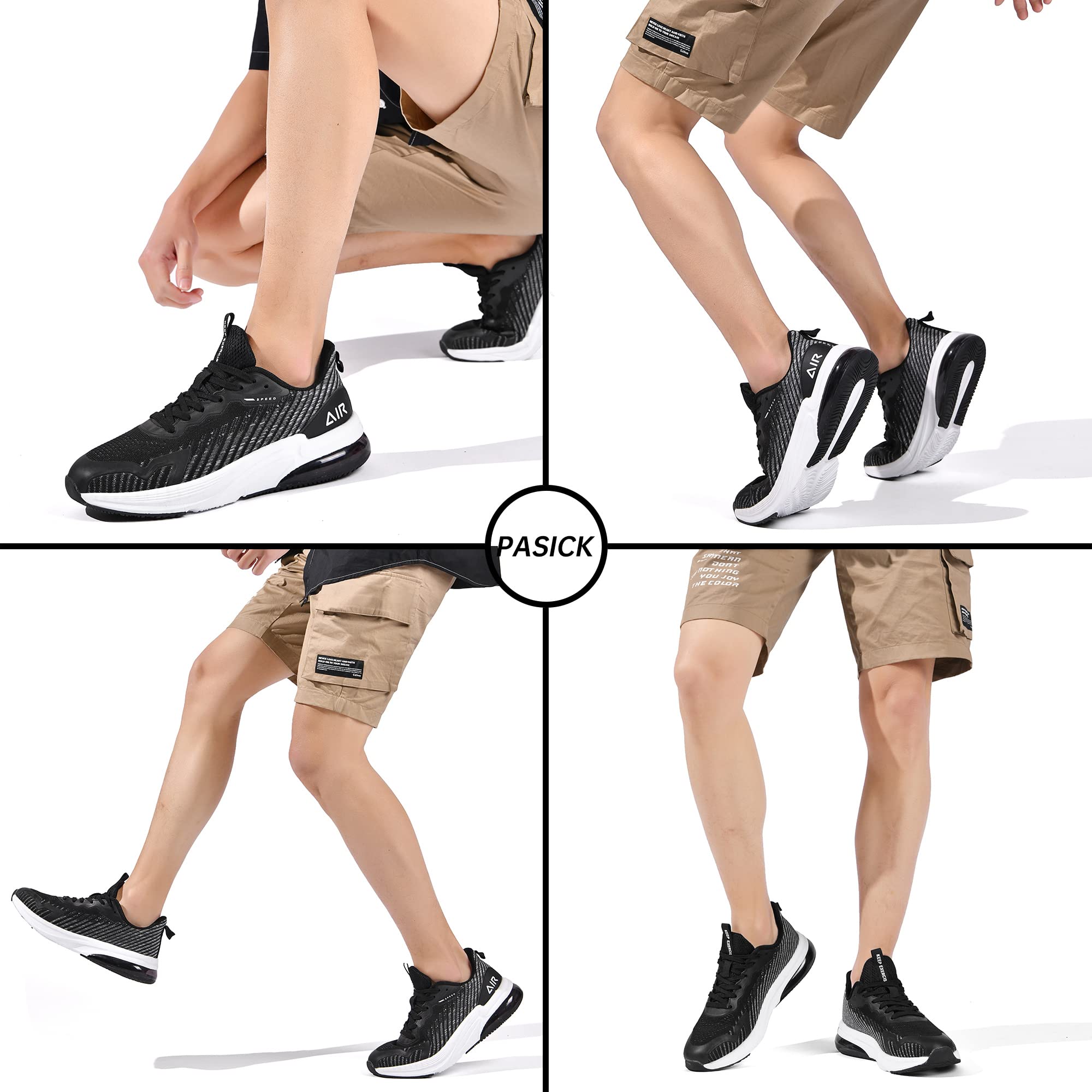 PaSick Mens Road Running Shoes Athletic Air Cushion Lightweight Breathable Workout Gym Walking Running Sneakers Blackwhite Size 10