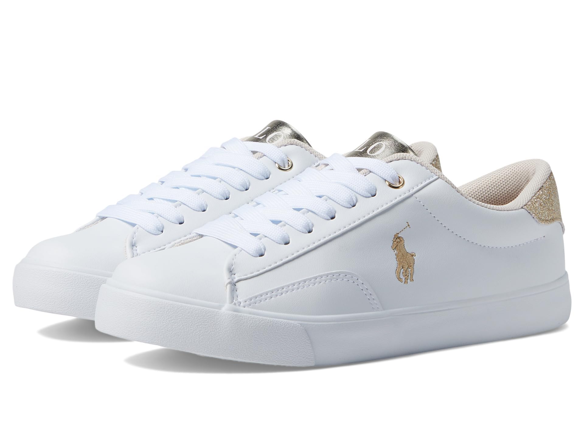 POLO RALPH LAUREN Girl's Theron V (Big Kid) White Smooth Pu/Gold Metallic/Glitter/Gold Pony Player 7 Big Kid M