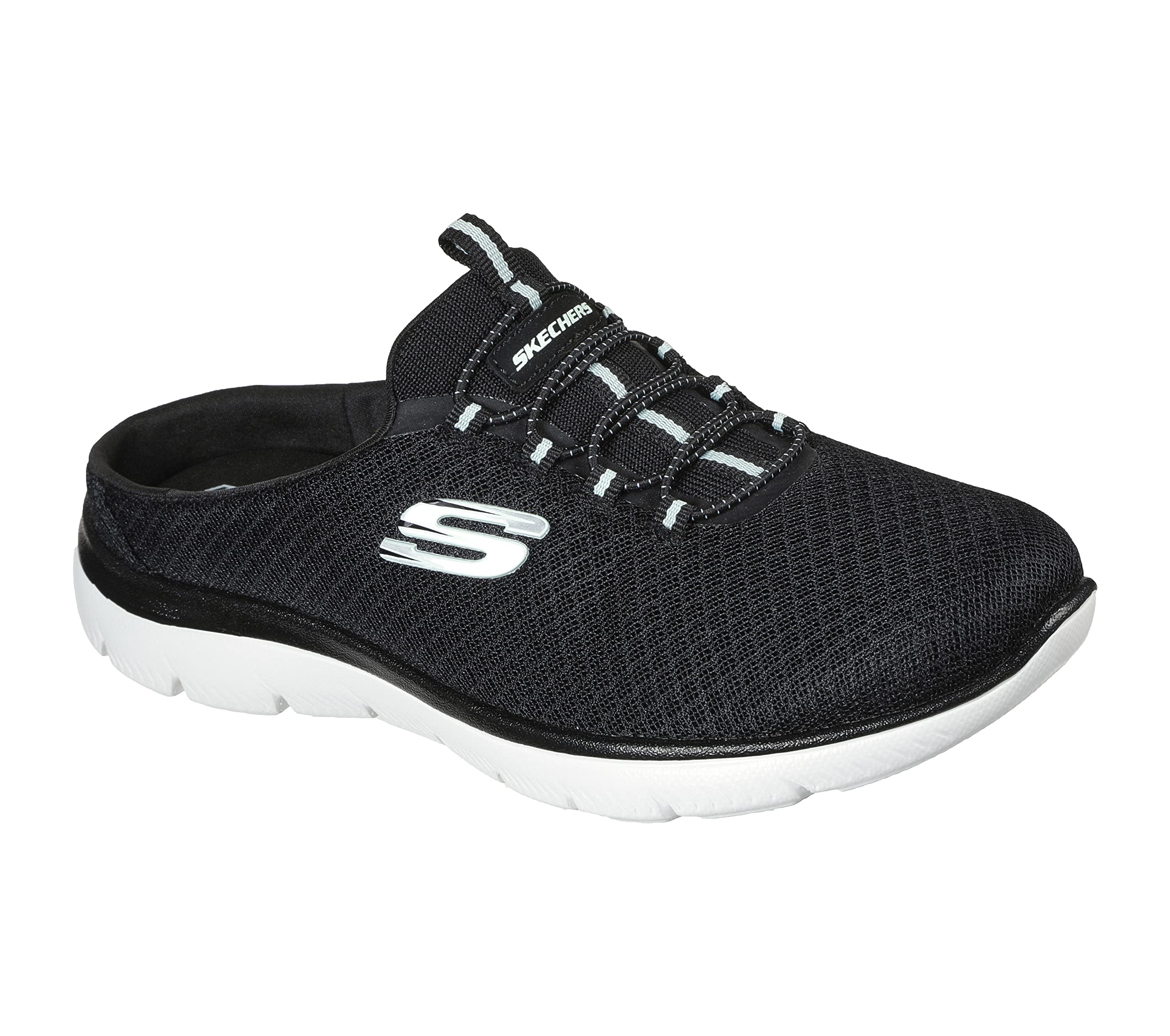 Skechers Women's Summits - Swift Step Sneaker Mule, Black/Aqua, 8.5