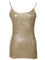 Anna-Kaci Womens Glitzy All Over Sequin Chain Straps Slim Spaghetti Tank Top, Gold, Medium