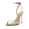 - Materials: Specchio Leather | Cow leather lining | Cow leather outsole|Upper format: Unique strap|Heel Type: High Heel|Heel Style: Stiletto|Closure Type: Buckled strap|Toe Style: Round toe|Counter Type: Open|Heel Height: 4.3in | 110mm|Rubber patch at the heel.|SKU: S2152900020007