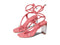 - Strapped and knotted design on top of foot with wrap and tie closure around ankle.