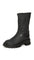 Details: A substantial pair of Schutz boots in matte-black leather, outfitted with a resilient lug sole and accented with branded zipper tabs.