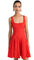 - A-line silhouette with darted waist, Square neckline