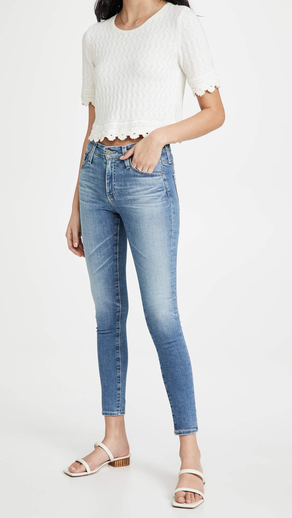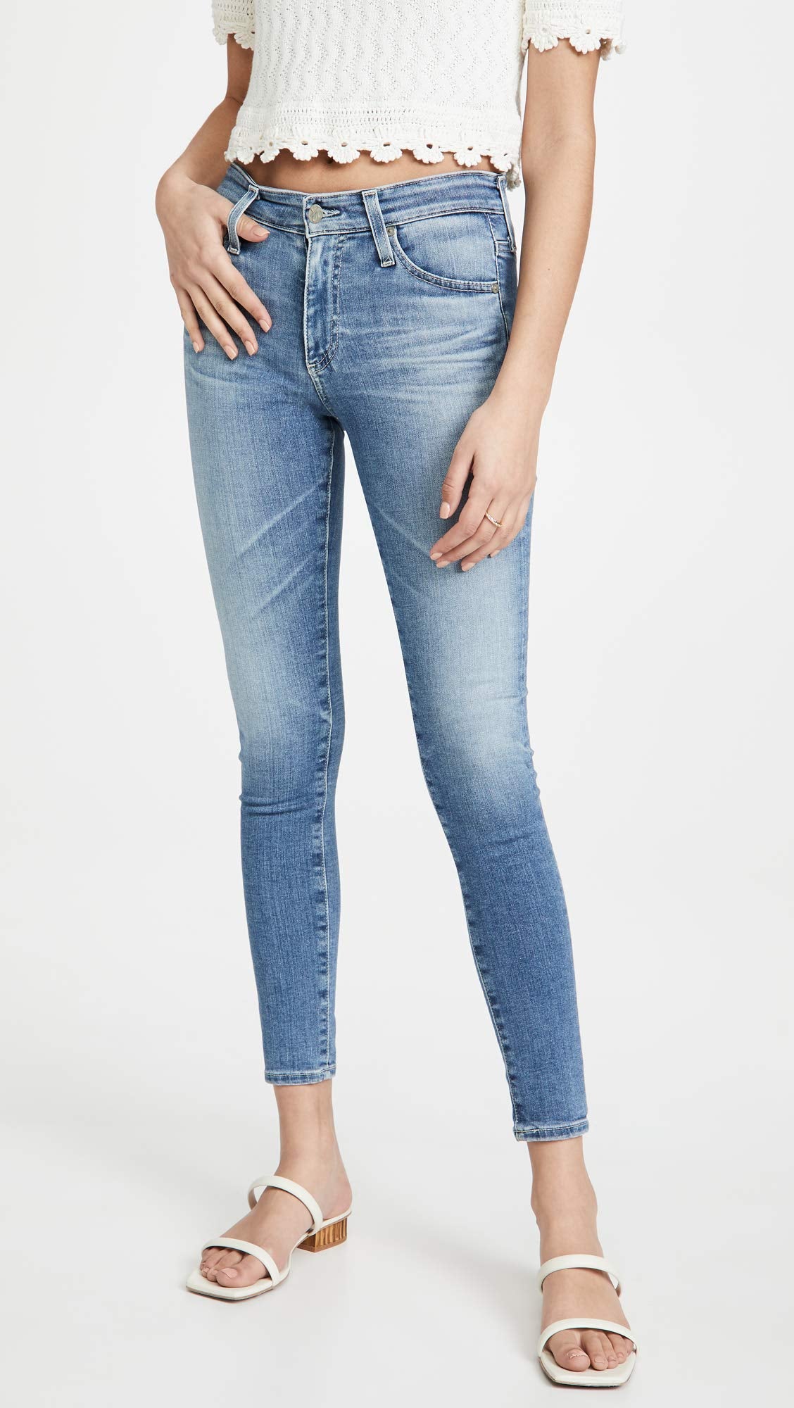 - Create an effortless look wearing the AG Adriano Goldschmied Farrah High-Rise Skinny Ankle jean. This skinny jean compliments the body well and is a staple to add to the wardrobe.