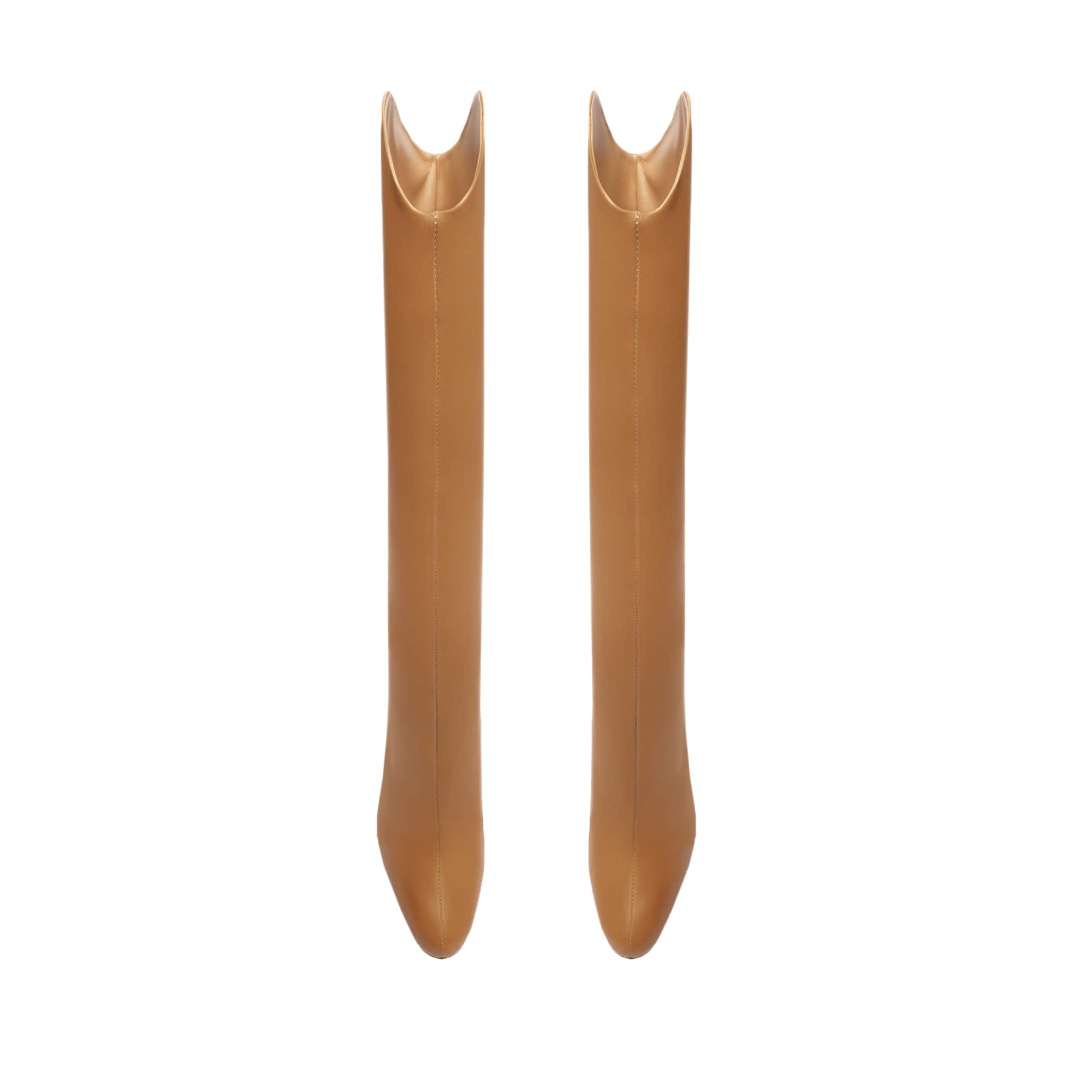 Details: Keep your look understated and classic in these heeled Schutz boots, which feature a tall shaft and supple, neutrally colored leather.