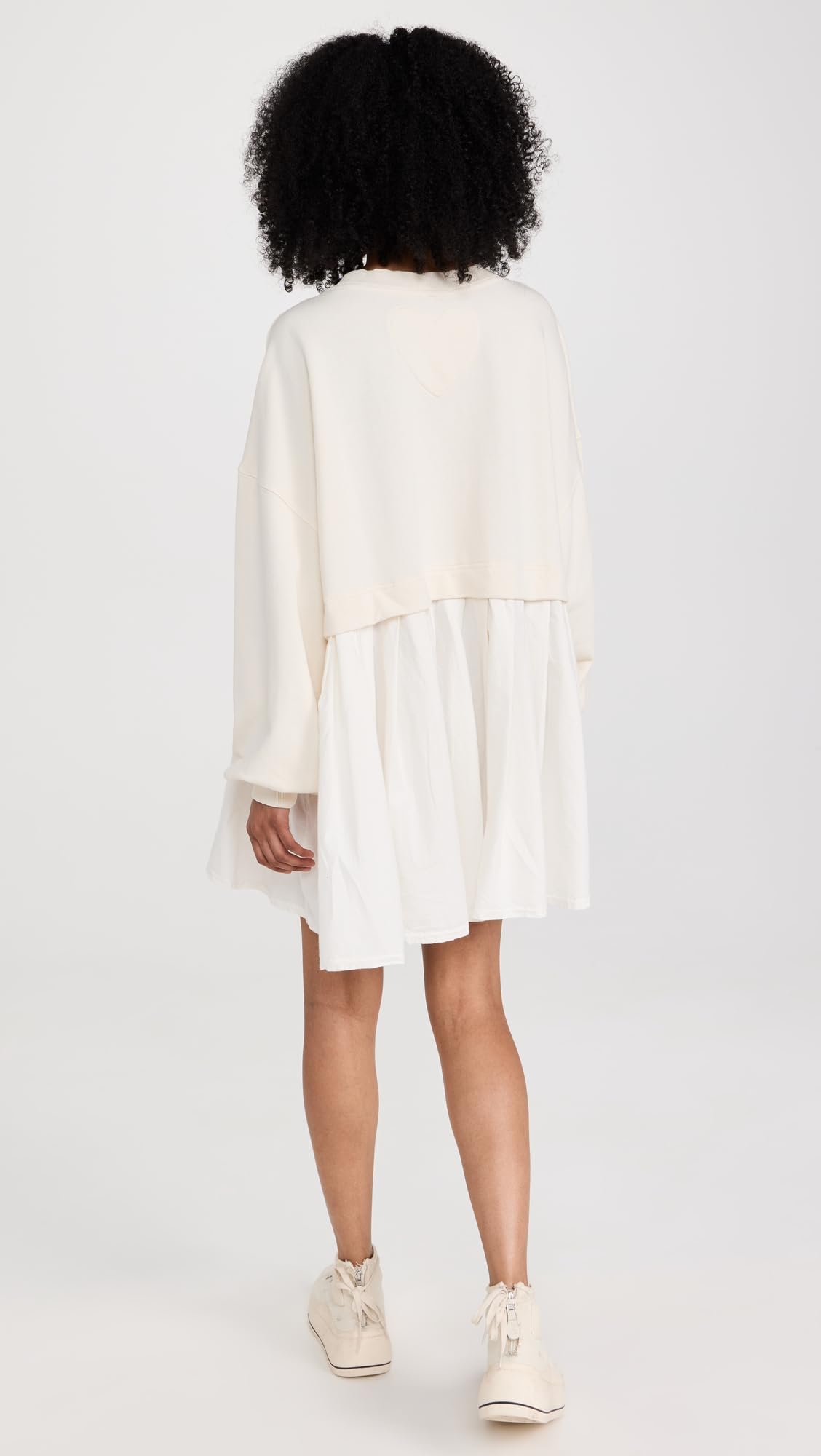 - Crew neck and long sleeves, Tonal heart detail at back, Gathered seams