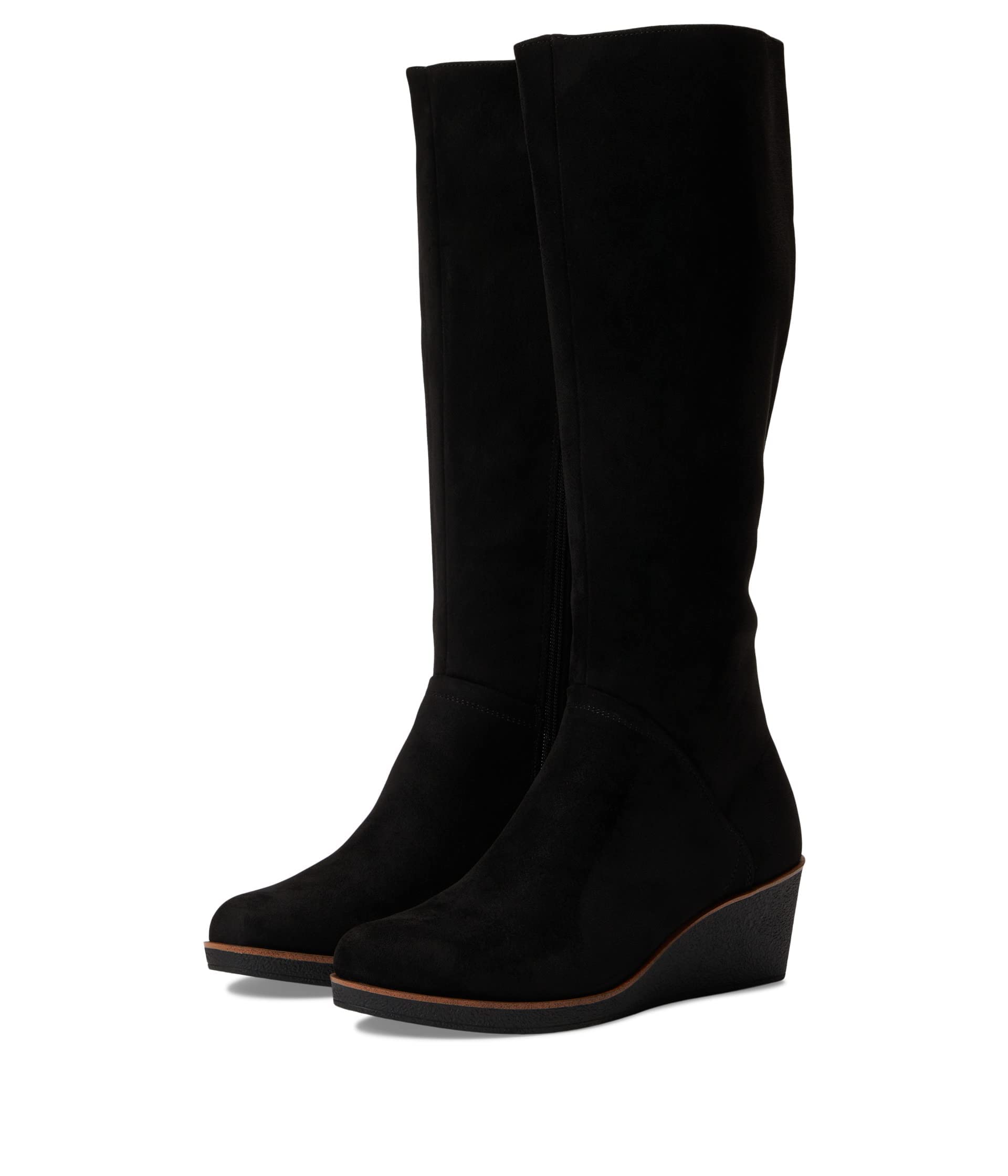 What to wear with ultra-soft cashmere sweaters and plush corduroy? Our Binocular tall boot, designed in soft faux suede—an indispensable style statement from 9 to 5 and beyond. A wedge heel amps up the comfort and walkability factors.