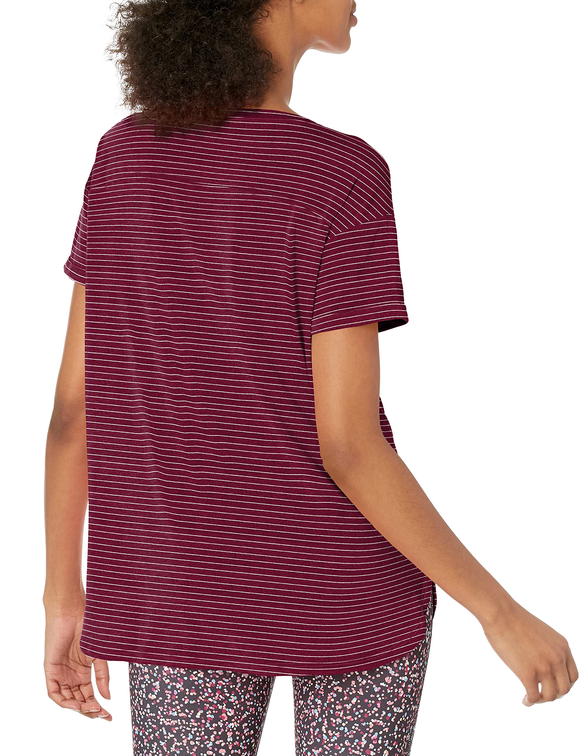 Amazon Essentials Women's Studio Relaxed-Fit Lightweight Crewneck T-Shirt (Available in Plus Size), Burgundy Stripe, Small