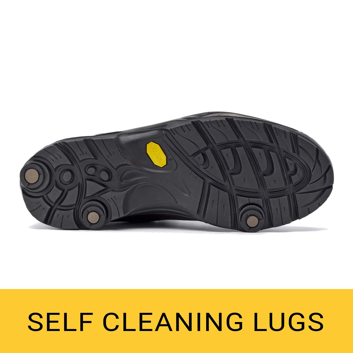 Details: These shock absorbers can be identified by their different colour respect to the sole. The shock absorbers are created by combining two polyurethane layers-one of high and one of low density. These layers are individually coloured using a new and innovative technology. Gripped with a molded rubber outsole produced in conjunction with Vibram, the balance of the outsole has self-cleaning lugs designed for optimum performance on varying types of terrain.