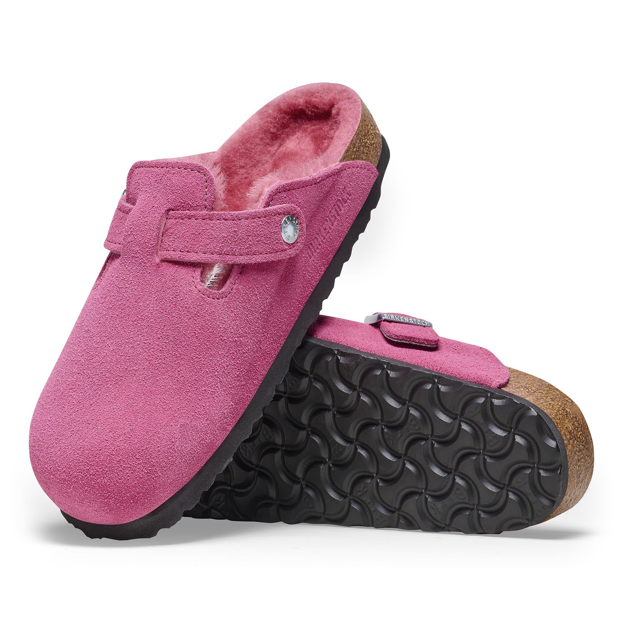 Birkenstock Women's Boston Shearling Clogs, Fuchsia Tulip, Red, 8 Medium US