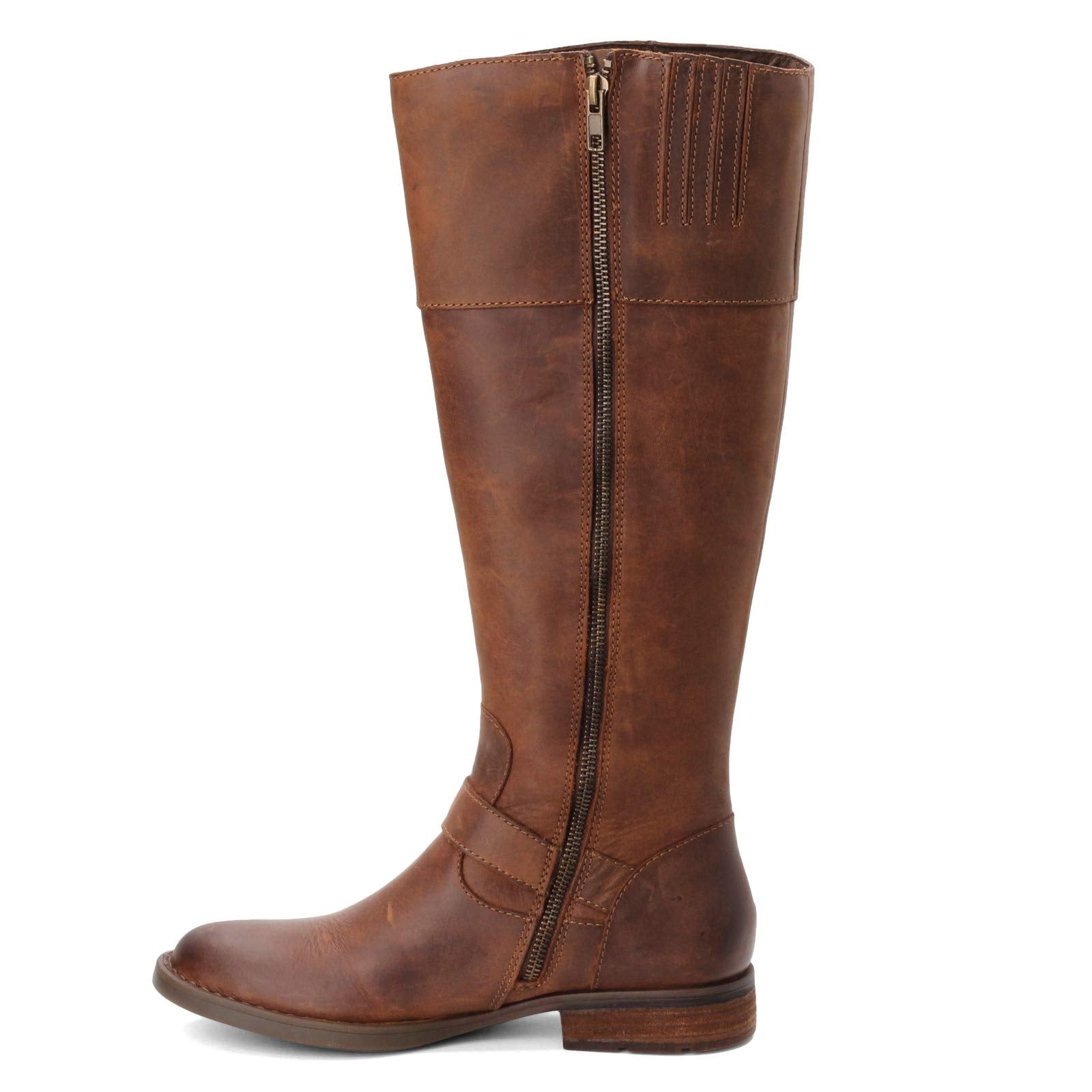 Details: Women's Born, Brayden Knee High Boot. This stylish knee high leather boot is a must have for fall! Pair this low heel tall boot with anything from leggings to skirts for a chic look. Leather uppers with smooth linings Buckle and strap accent Opanka hand crafted construction Full inside zipper for easy on and off Leather lined, cushioned footbed for added comfort One inch heel Manmade outsole. Heel Height of 1.00 inches