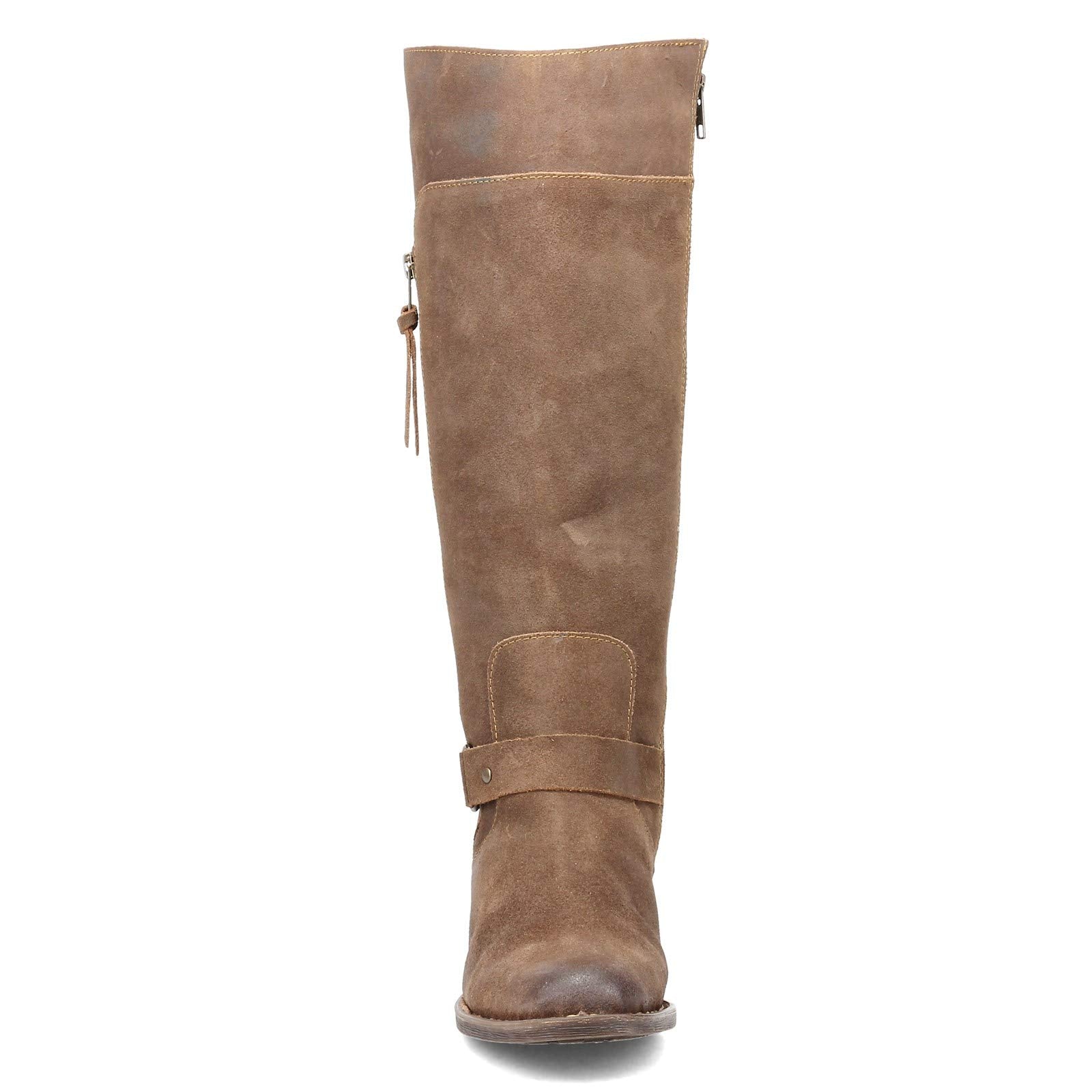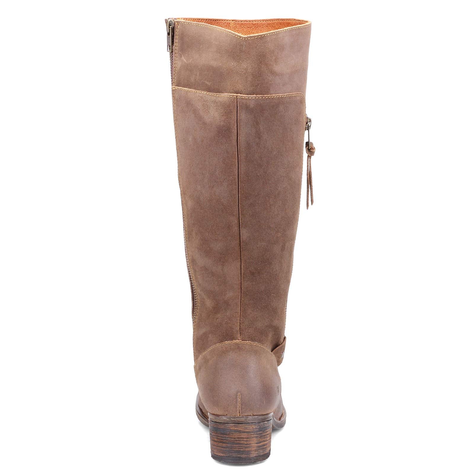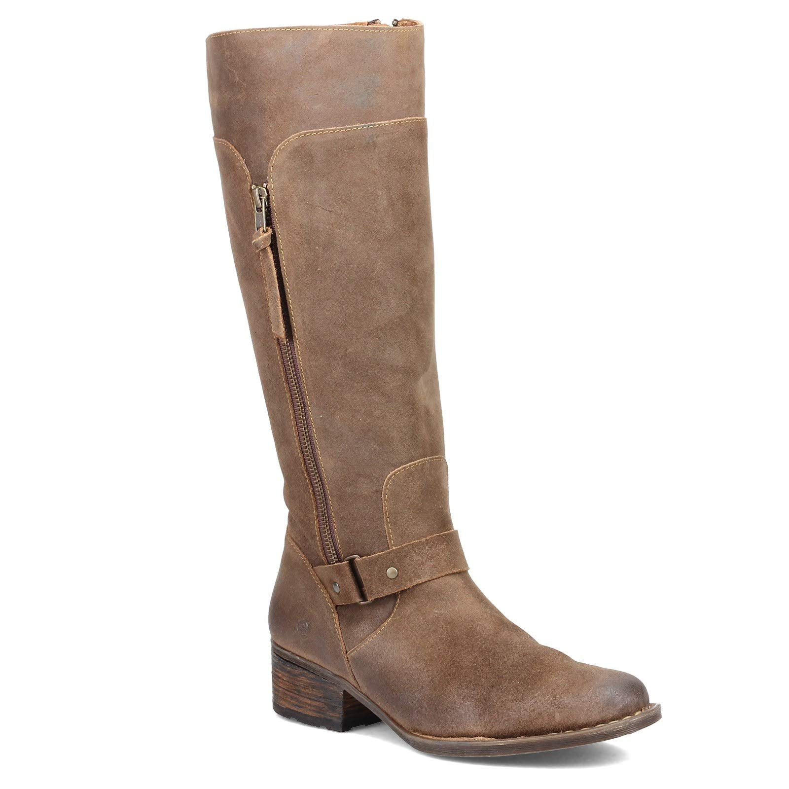 Details: Women's Born, Molema Boot. This chic knee high boot is a must have for fall! Pair this low heel suede boot with anything from leggings to skirts for a fashionable look. Distressed suede leather uppers Decorative strap accent Opanka hand crafted construction Side zipper for easy on and off Microsuede and leather lining Soft cushion insole 2 inch heel Durable rubber outsole. Heel Height of 1.50 inches