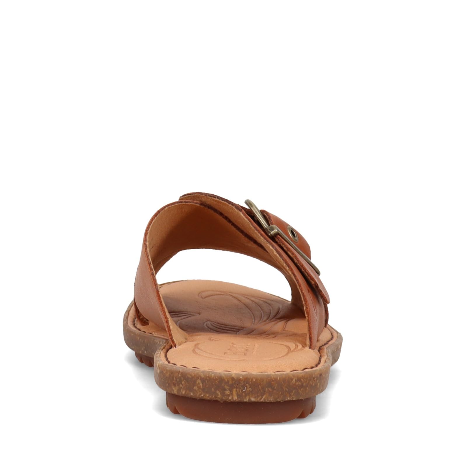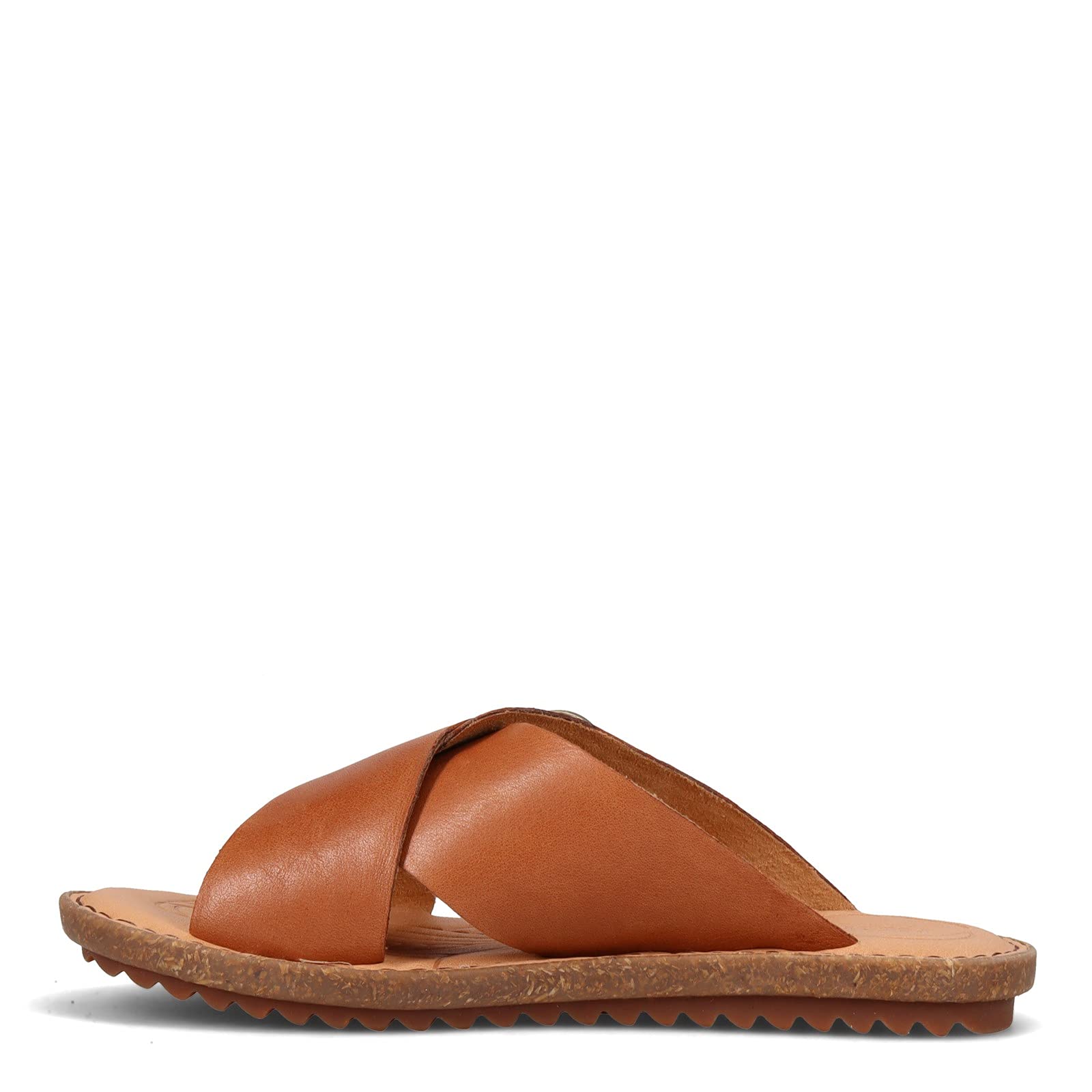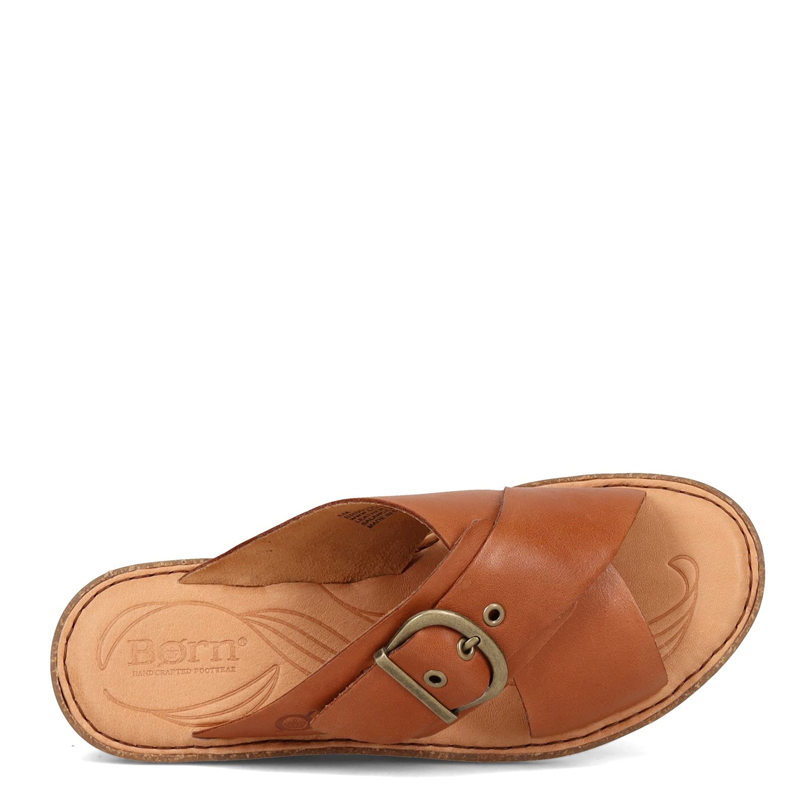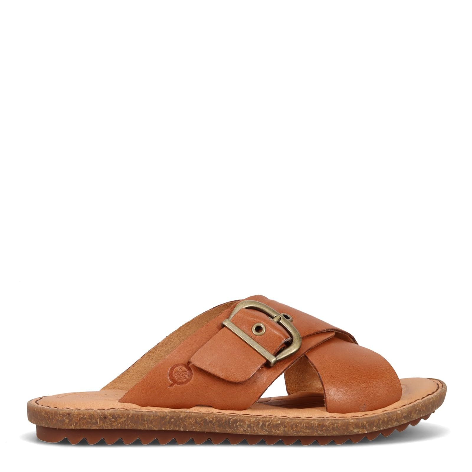 Women's Born, Rio Sandal. This simply styled slide sandal looks great with almost any outfit. The soft suede uppers and plush insole will feel luxurious and keep you looking great. Suede leather uppers are super softSoft leather linings are breathable and offer a luxurious feelAdjustable oversized buckleOpanka handcrafted constructionSoft leather covered footbed with arch support and extra foam for added comfortCork infused midsoleHigh traction lightweight rubber outsole