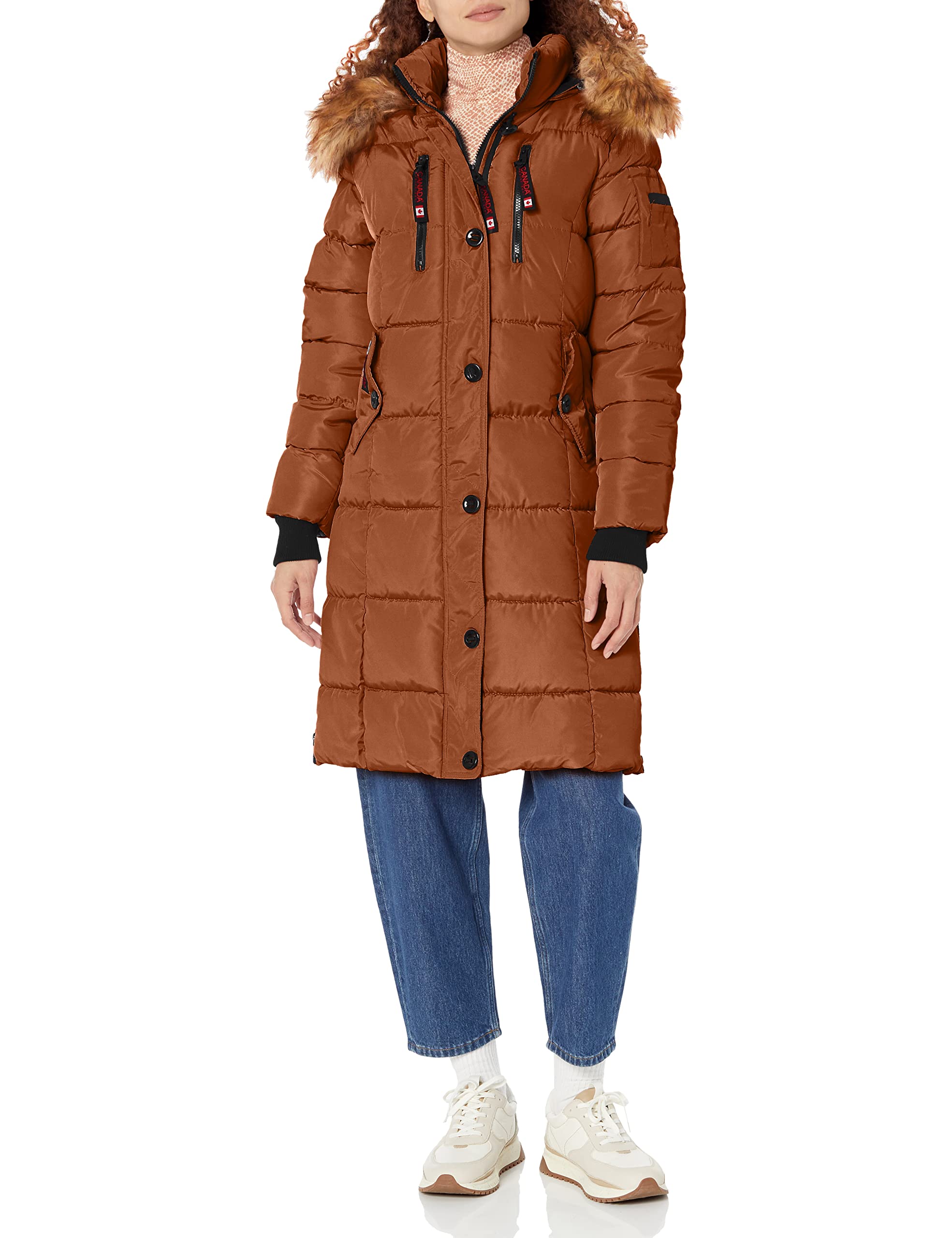 Canada Weather Gear Women's Heavyweight Long Puffer Jacket, Pecan, Large