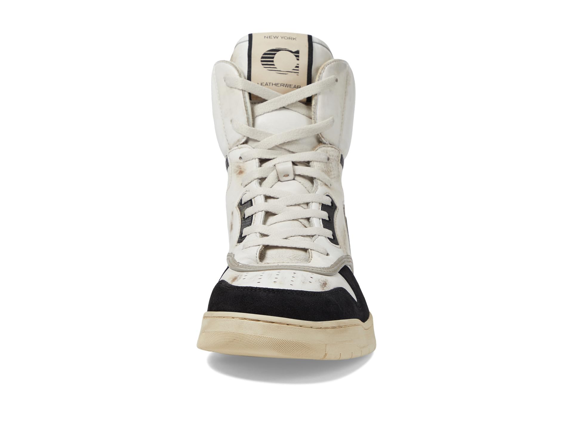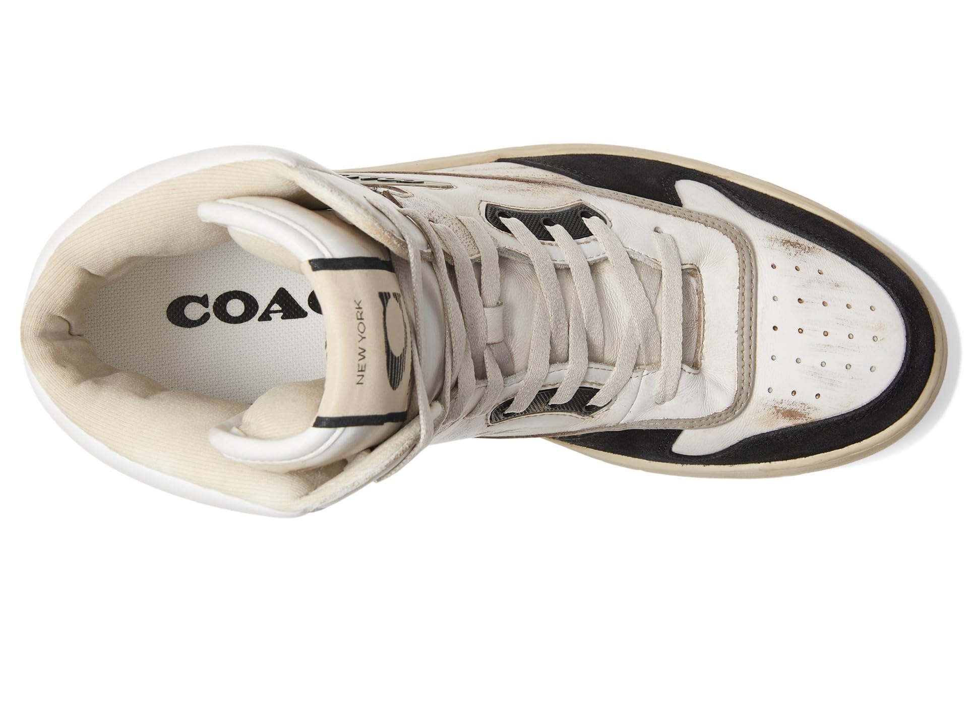 - Give unbeatable traction to your steps by wearing COACH Distressed Leather and Suede High-Top Sneaker. The sneakers have a high-top design, round toe, and lace-up closure.