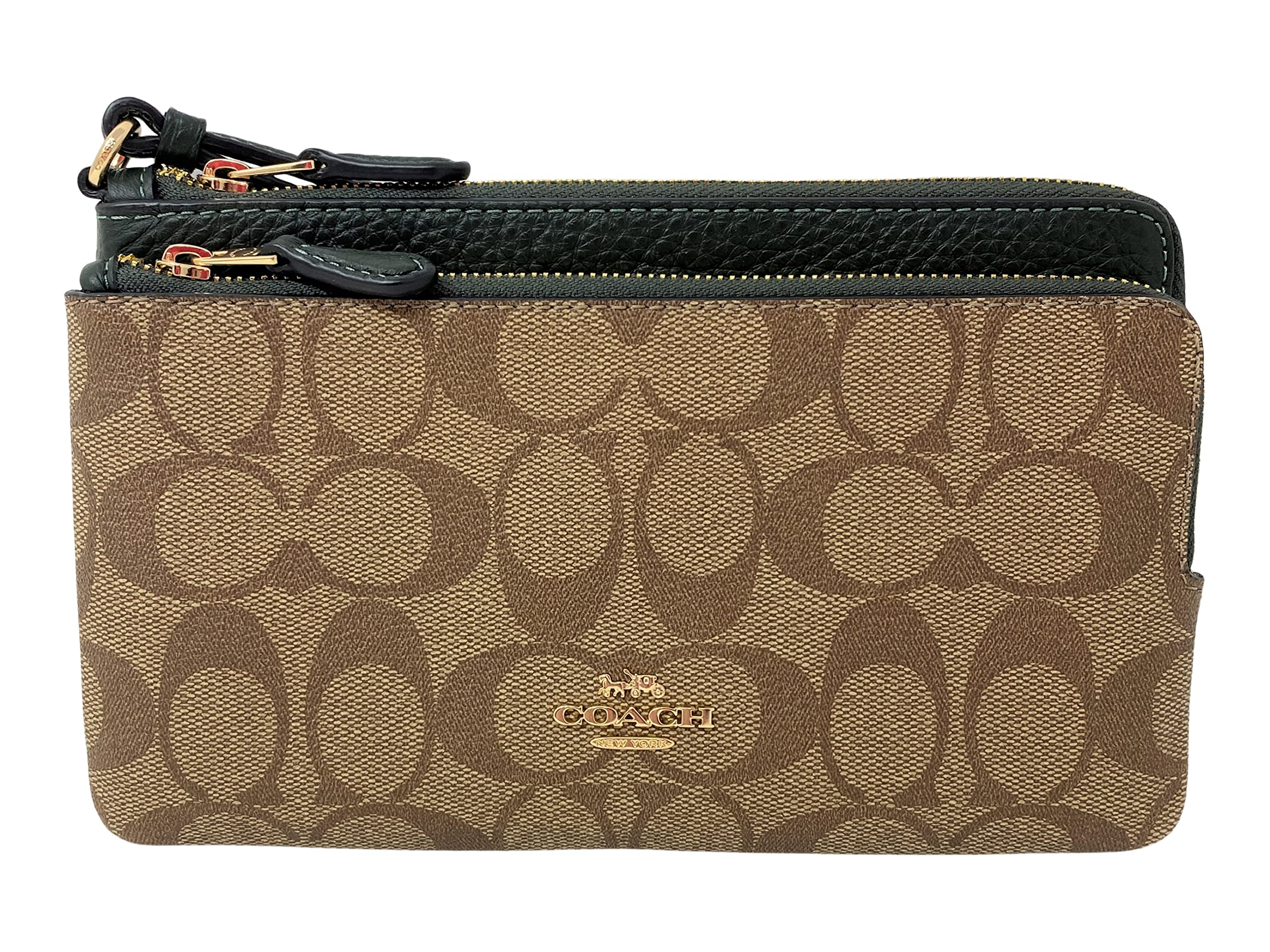 Coach Double Zip Wallet In Signature Coated Canvas (Khaki Amazon Green) Style No. C5576