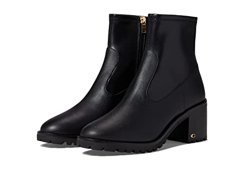 Details: Add a mega dose of style to your casual look by wearing the COACH Joy Leather Bootie. Ankle-length boots featuring leather and man-made upper. Man-made lining with a cushioned footbed. Almond toe silhouette. Chunky block heel. Side zippered closure. Flexible rubber outsole. Imported. Measurements:Heel Height: 2".