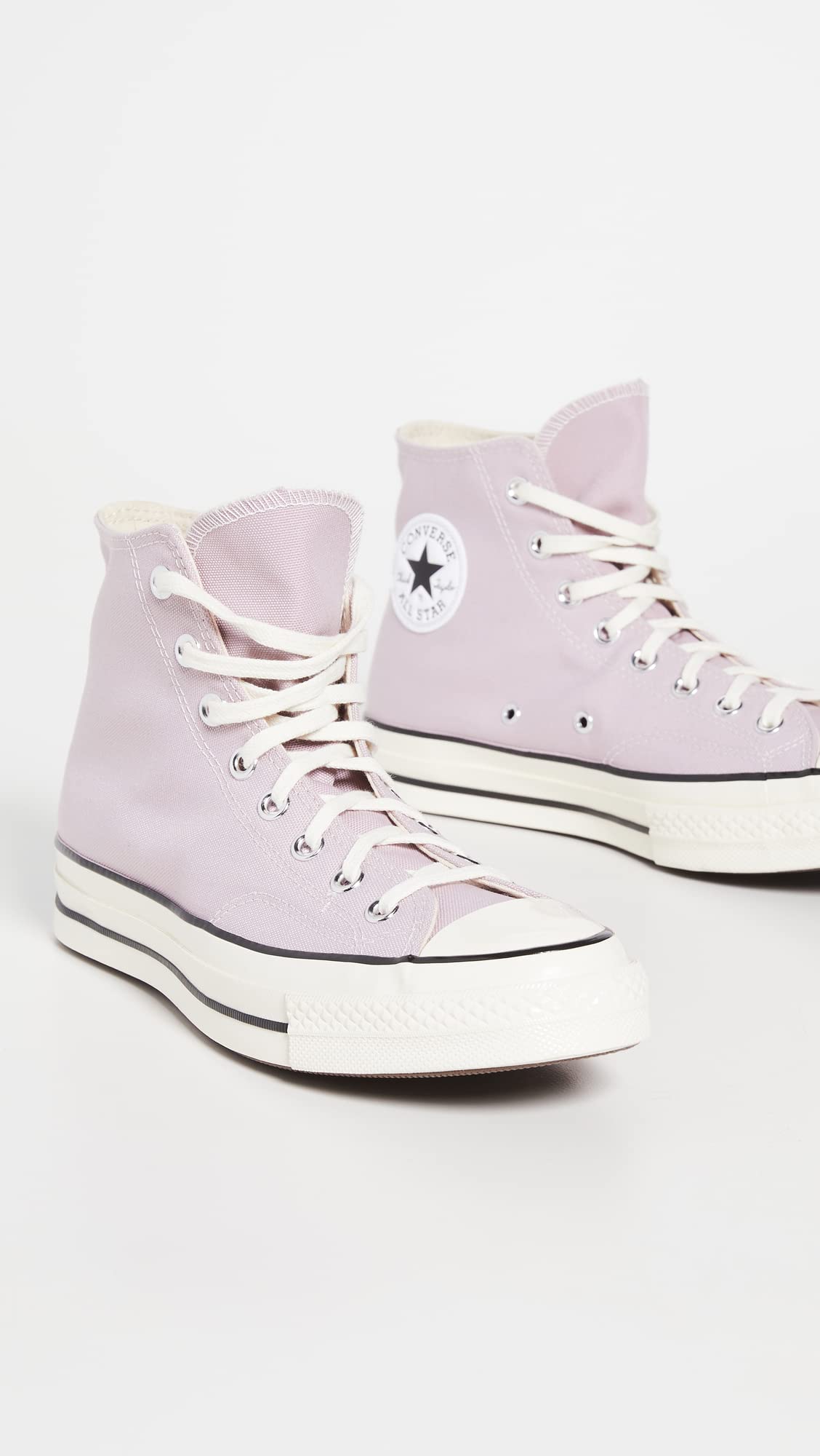 Chuck 70 Recycled silhouette Canvas upper Metal eyelets Flat cotton laces Rubberized toe box Medial collar CTAS patch Rubber sole unit Style: cn171474c Color: Himalayan Salt / Egret / Black Material: Canvas