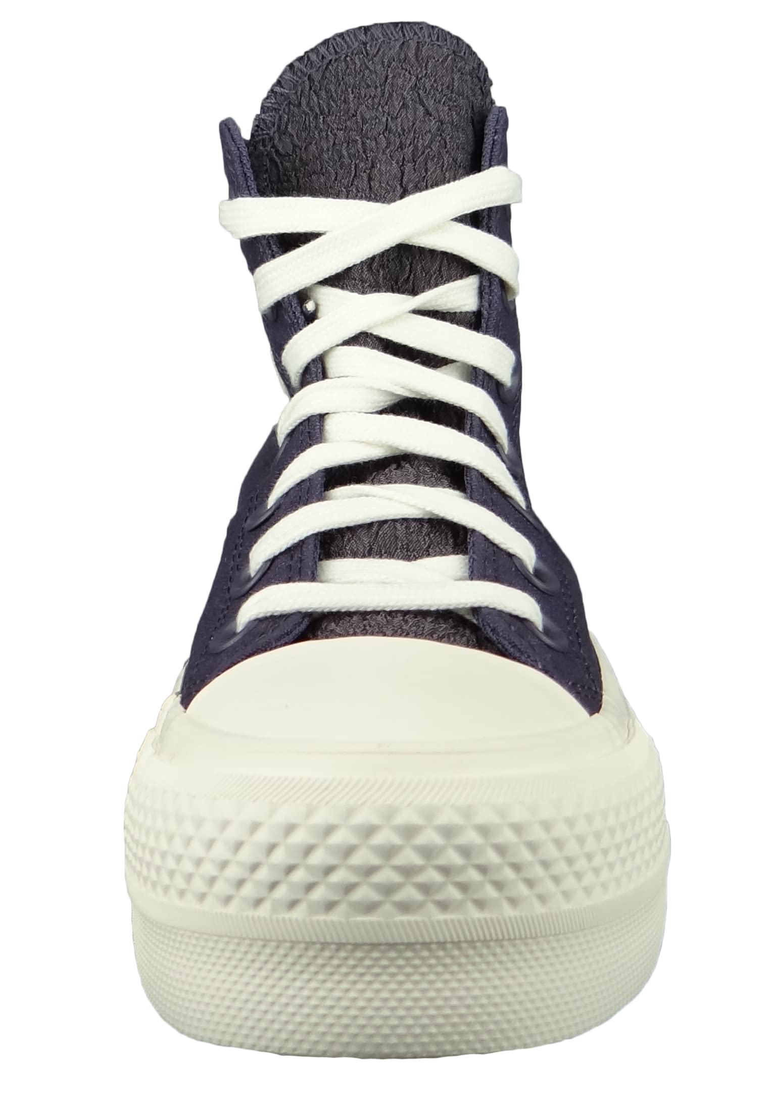 Details: A classic pair of high-top Converse Chuck Taylor sneakers, updated with a substantial platform and textured, tonal tongue.