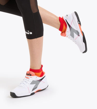 Diadora Trofeo W All Ground Pickleball Tennis Shoes (White/Black/Vermillion) (6.5)
