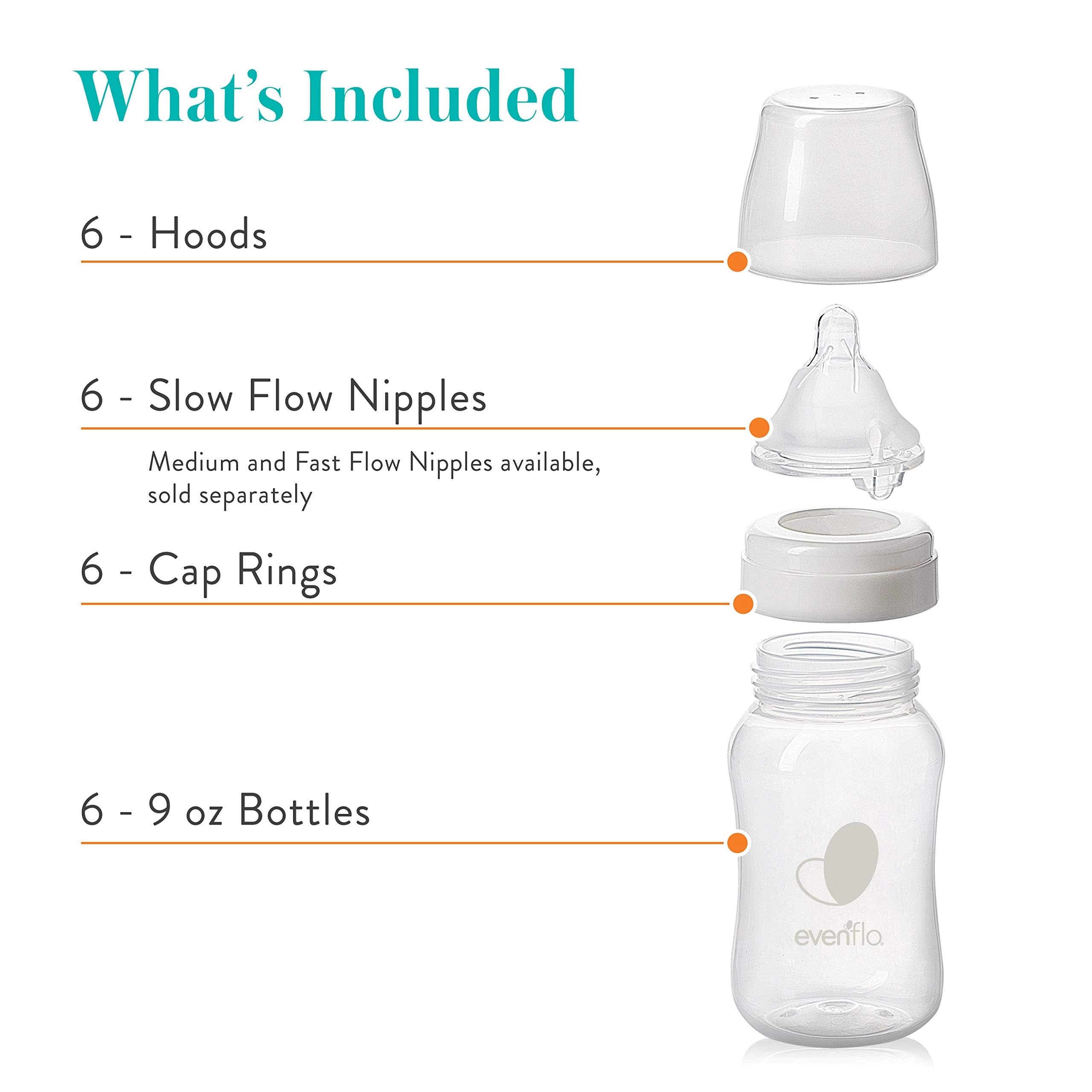 - PREMIUM VENTING - Evenflo Feeding's patented Proflo Venting Technology was developed to ensure milk bubbles stay in the bottle and not in your baby's tummy. This gentle, 1-piece venting system helps significantly reduce the potential for colic, reflux, gas, and fussiness, keeping your baby comfortable even after they are finished eating.