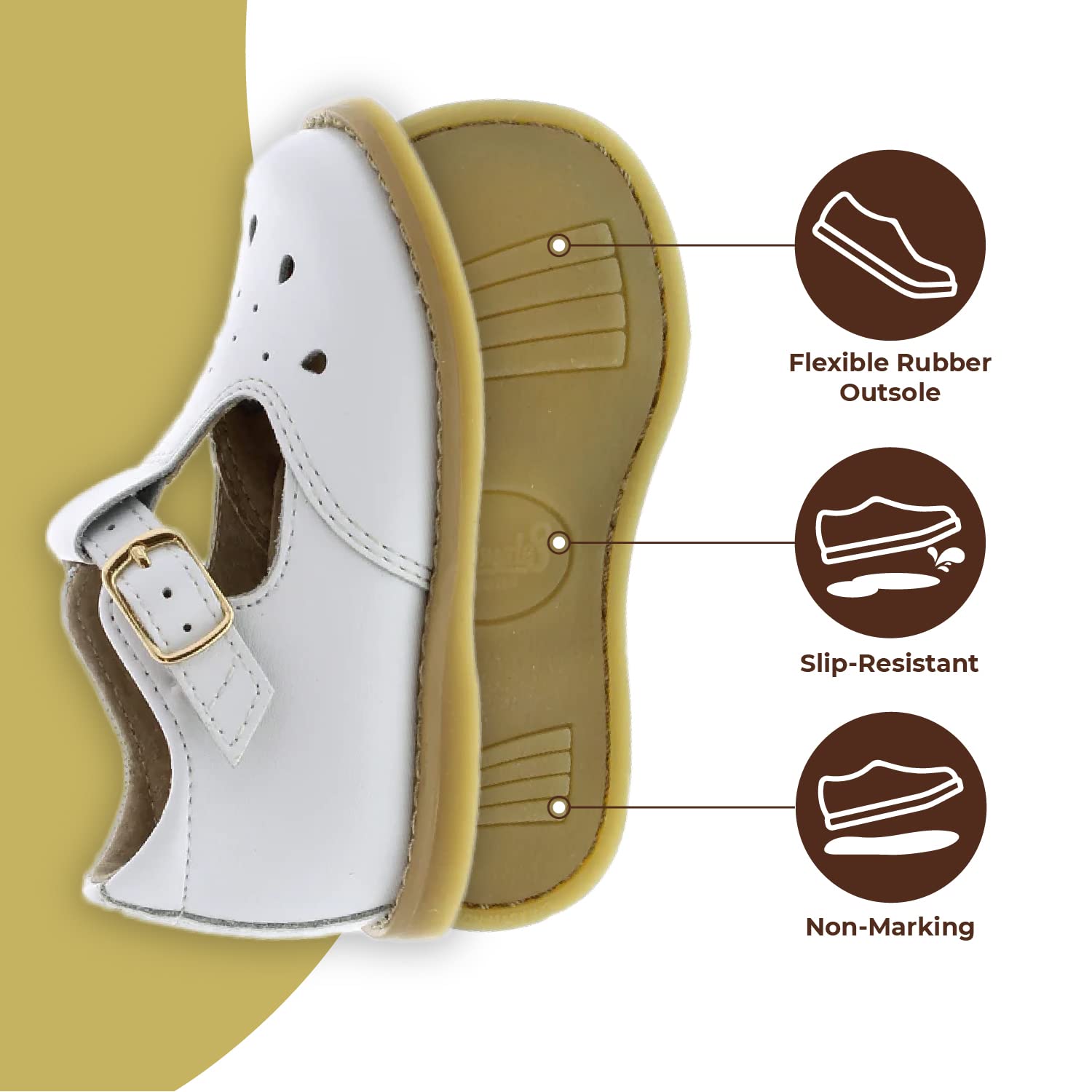 FOOTMATES Harper Mary Jane T-Strap Girls Flat Leather Walking Shoes with Custom-Fit Insoles, Slip-Resistant Non-Marking Outsoles - for Toddlers and Little Kids, Ages 1-8 5 Toddler White