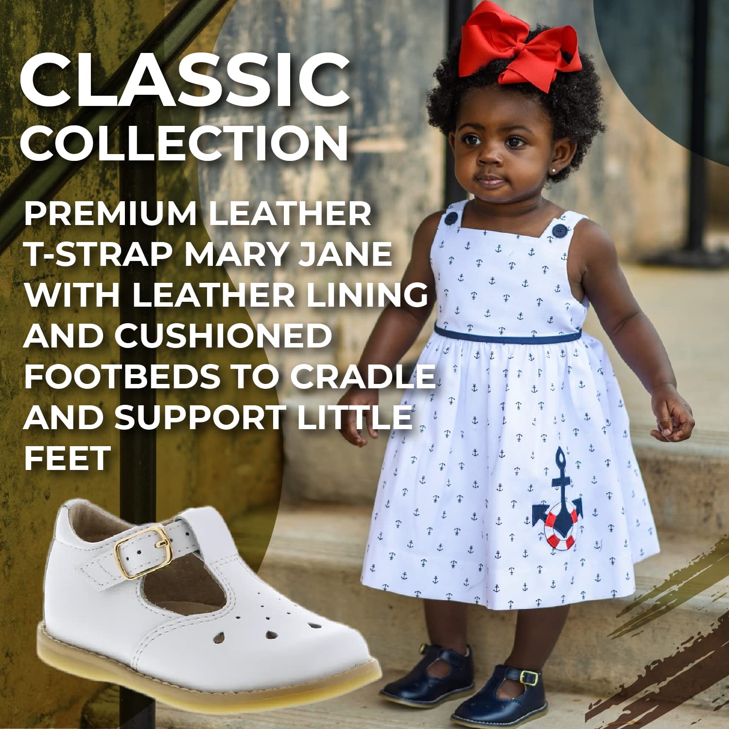 FOOTMATES Harper Mary Jane T-Strap Girls Flat Leather Walking Shoes with Custom-Fit Insoles, Slip-Resistant Non-Marking Outsoles - for Toddlers and Little Kids, Ages 1-8