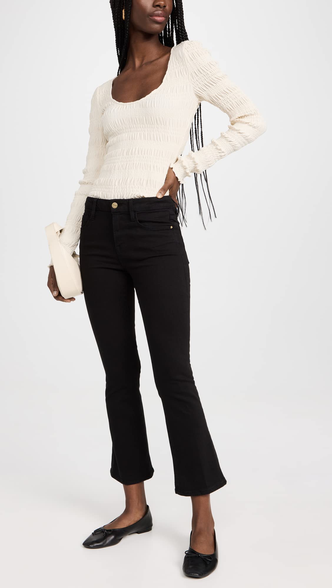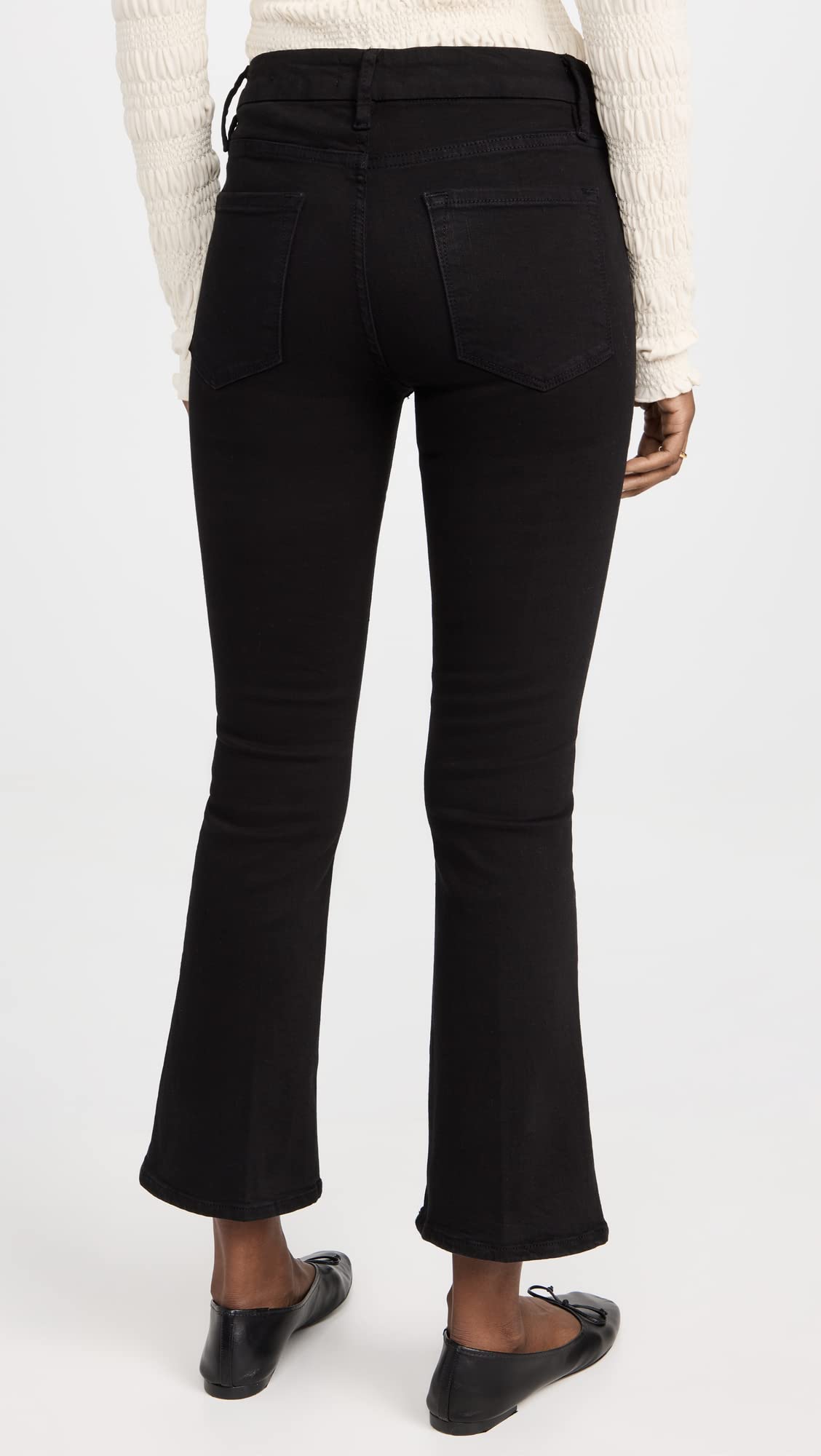 No-fuss denim with polished style is the name of the game with these FRAME jeans, which feature jet-black, super-stretch fabric and a subtle flare at the cropped hem.
