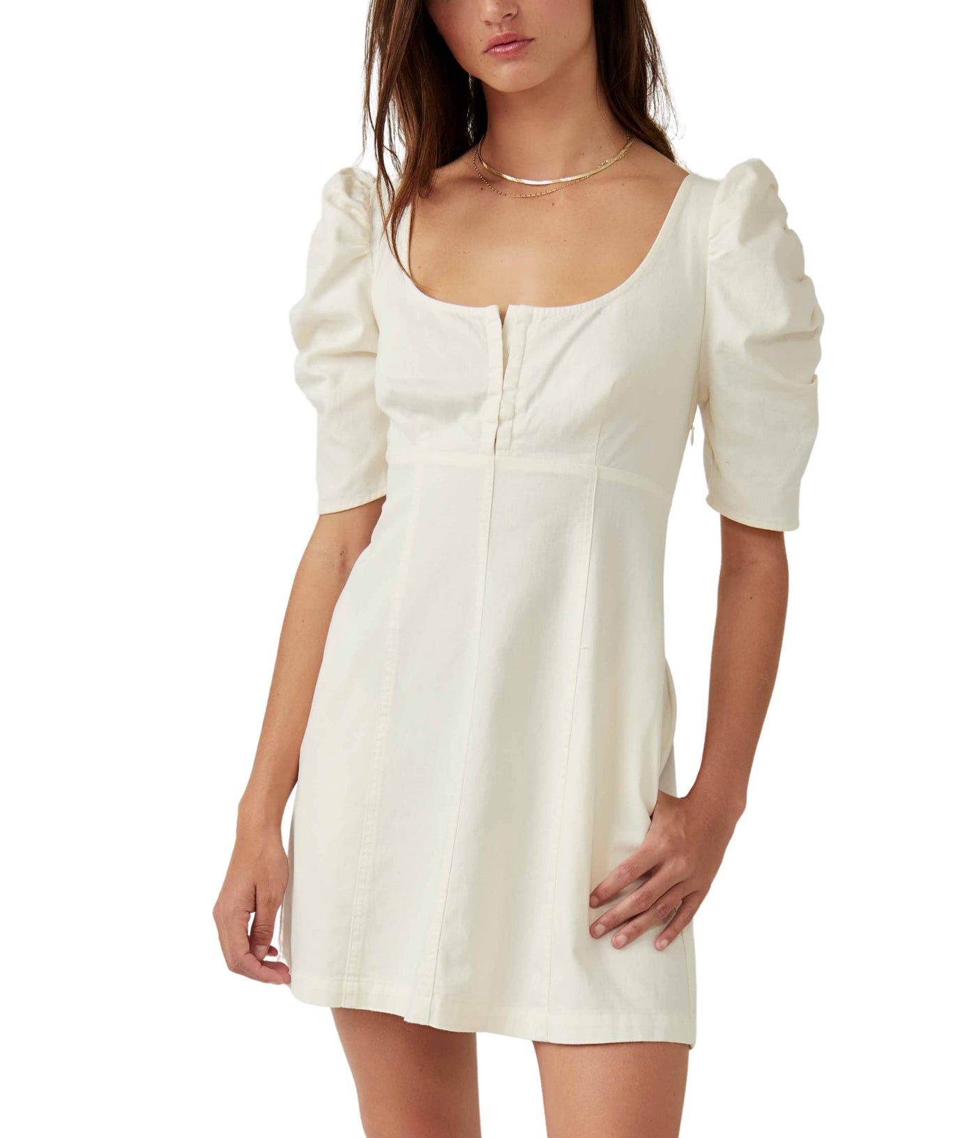 Free People Cheyenne Denim Mini Dress Medium Ivory