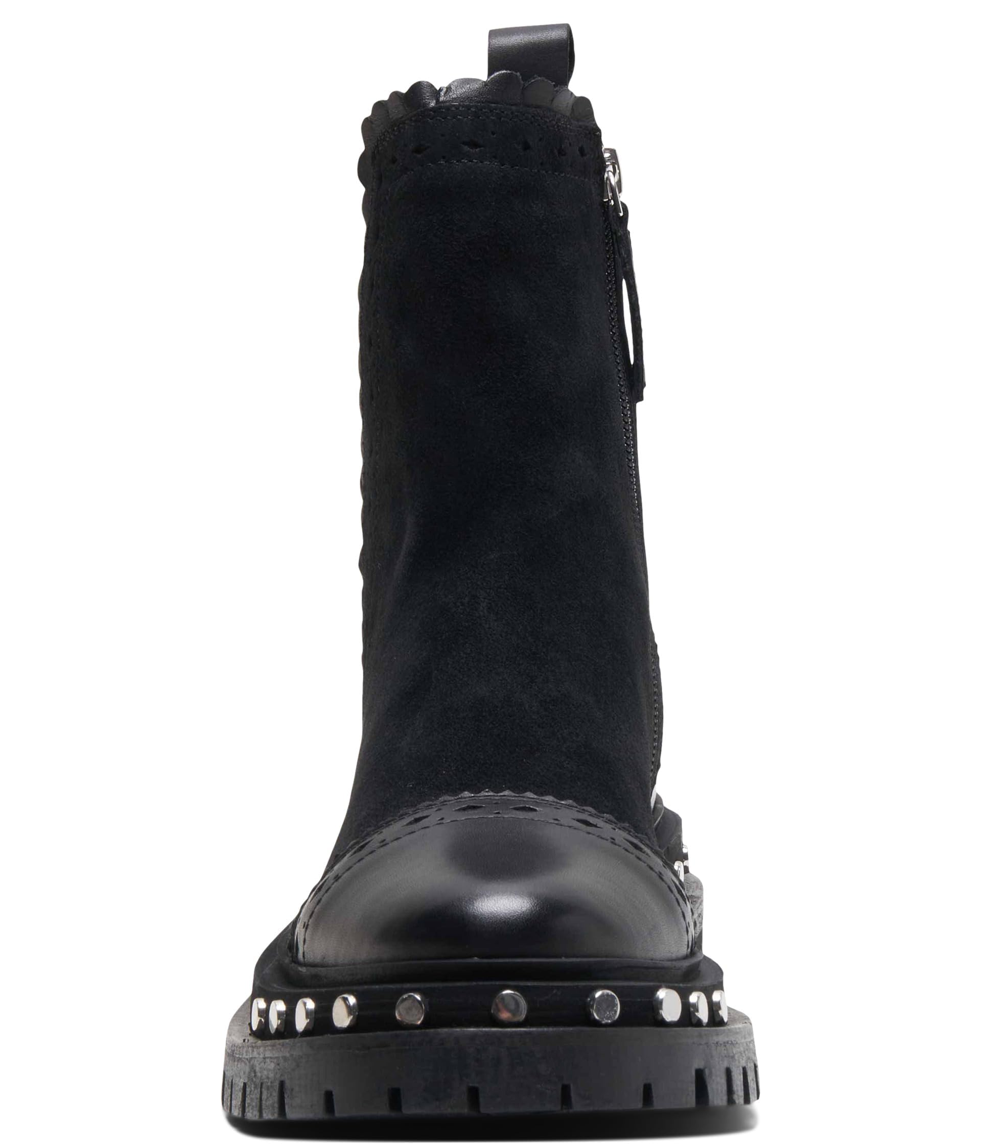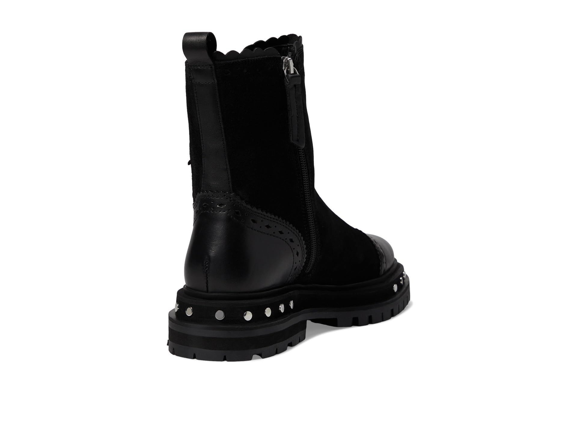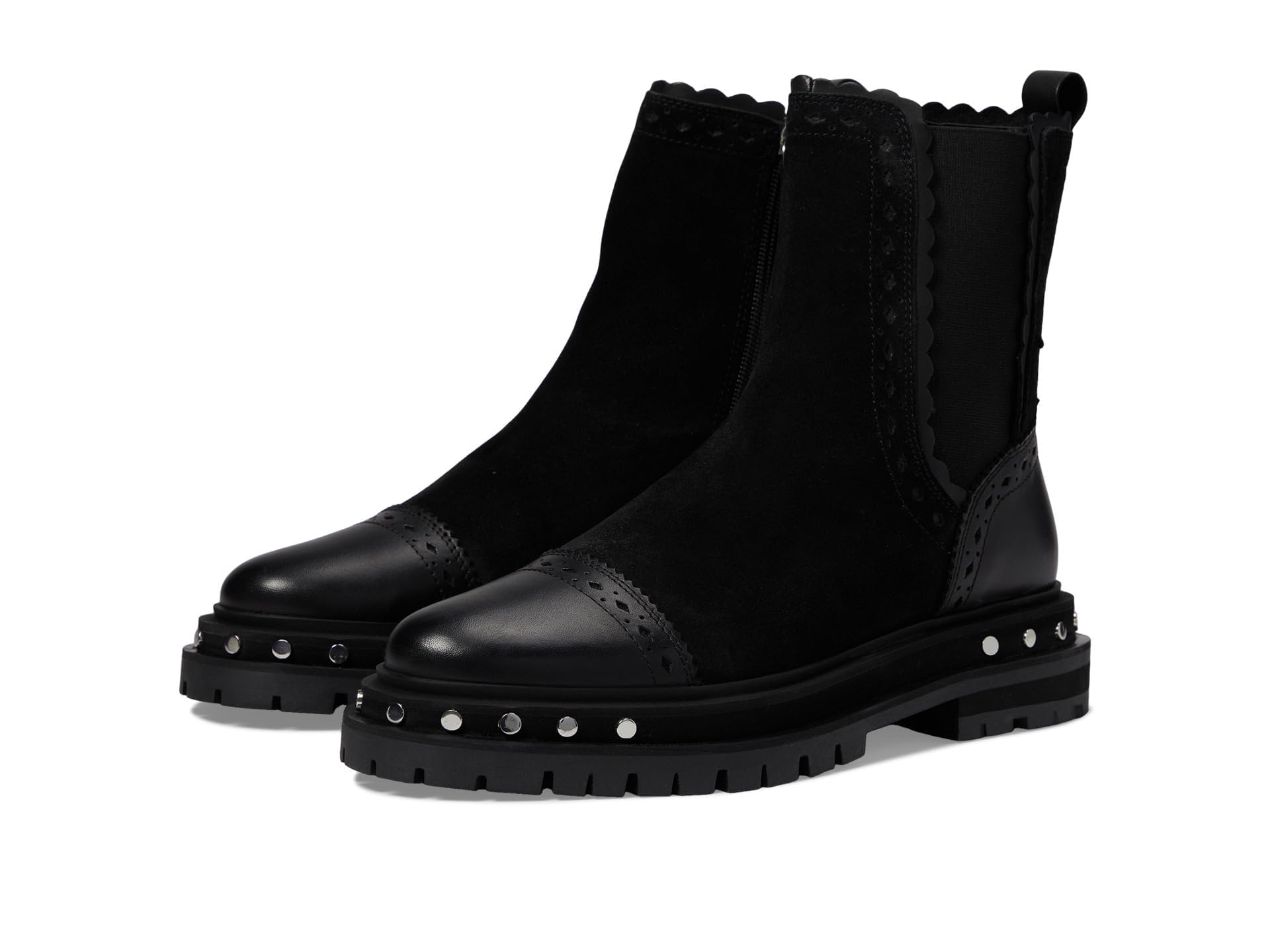 With the scalloped trims and the gleaming studded accents, the Free People Tate Chelsea Boots are ready to bring a chic twist to your classic fashion game. These ultra sleek boots are defined by a leather upper and a leather and textile lining and insole. They have a zippered side closure for ease of wear and come with gore panels and pull tabs for a flexible fit. Round toe silhouette. Tread synthetic outsole.