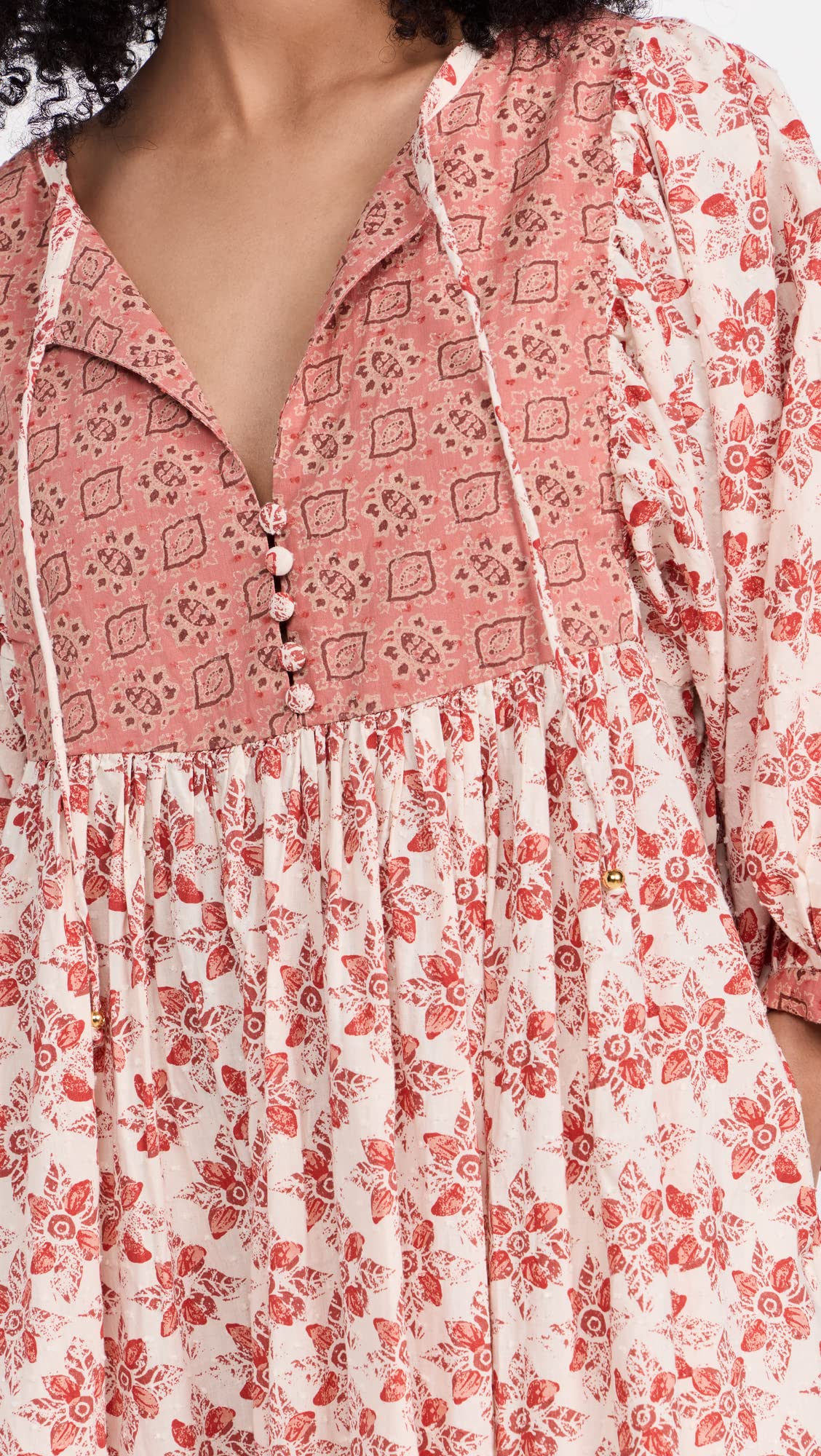 Contrast-pattern trim distinguishes the yoke and hem of this relaxed and lightweight Free People maxi dress.