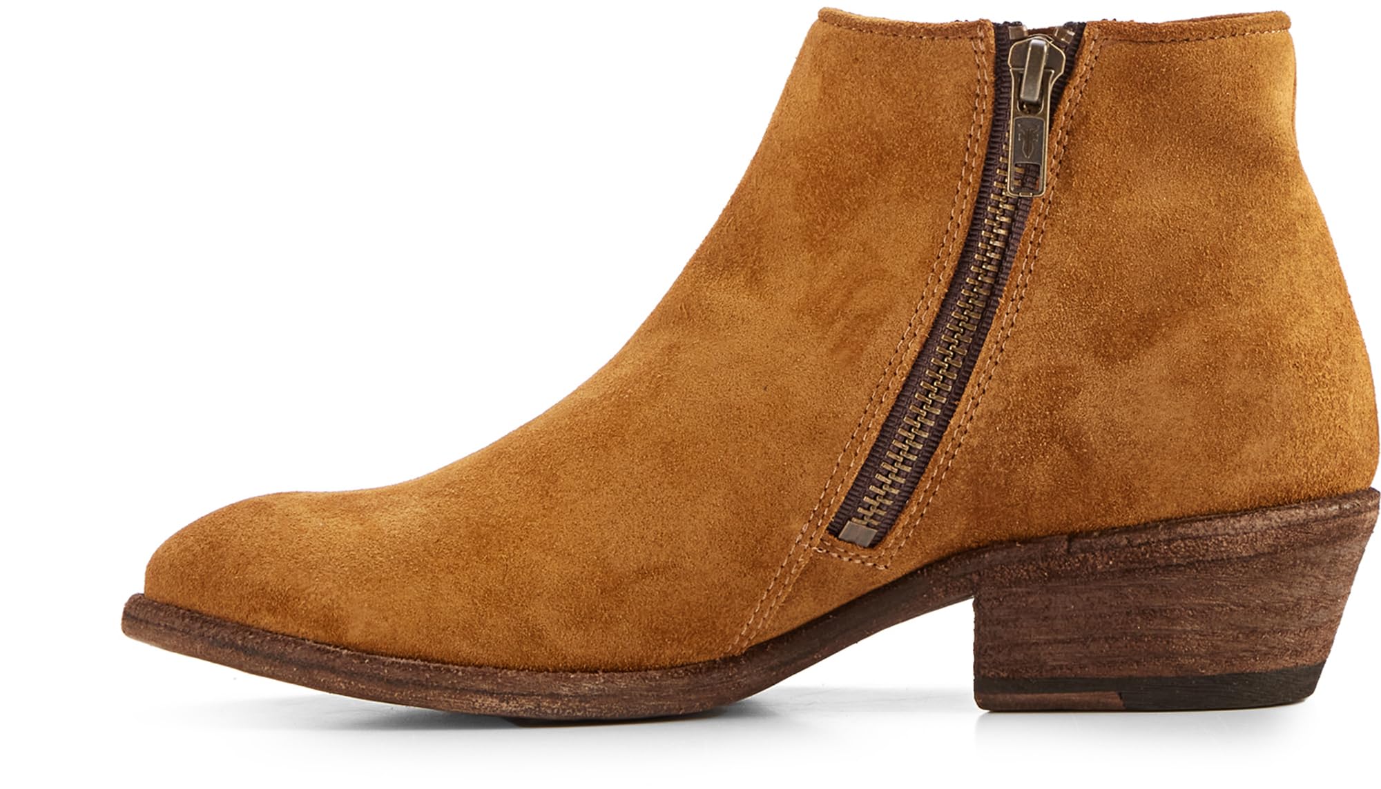 Frye Carson Piping Booties for Women Made from Soft Full-Grain Leather with Signature Western-Inspired Piping Detail and Supple Leather Lining – 4” Shaft Height, Bronze - Suede - 8M