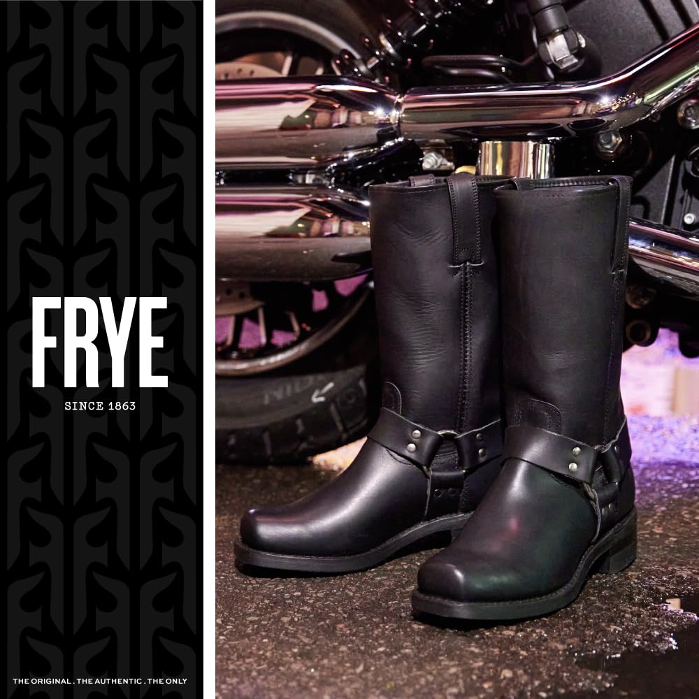 Frye Harness 12R Boots for Men with Oiled-Leather Upper, Goodyear Welt Construction, Stacked Leather Heel, and Nickel Hardware – 12” Shaft Height, Black - 11.5M