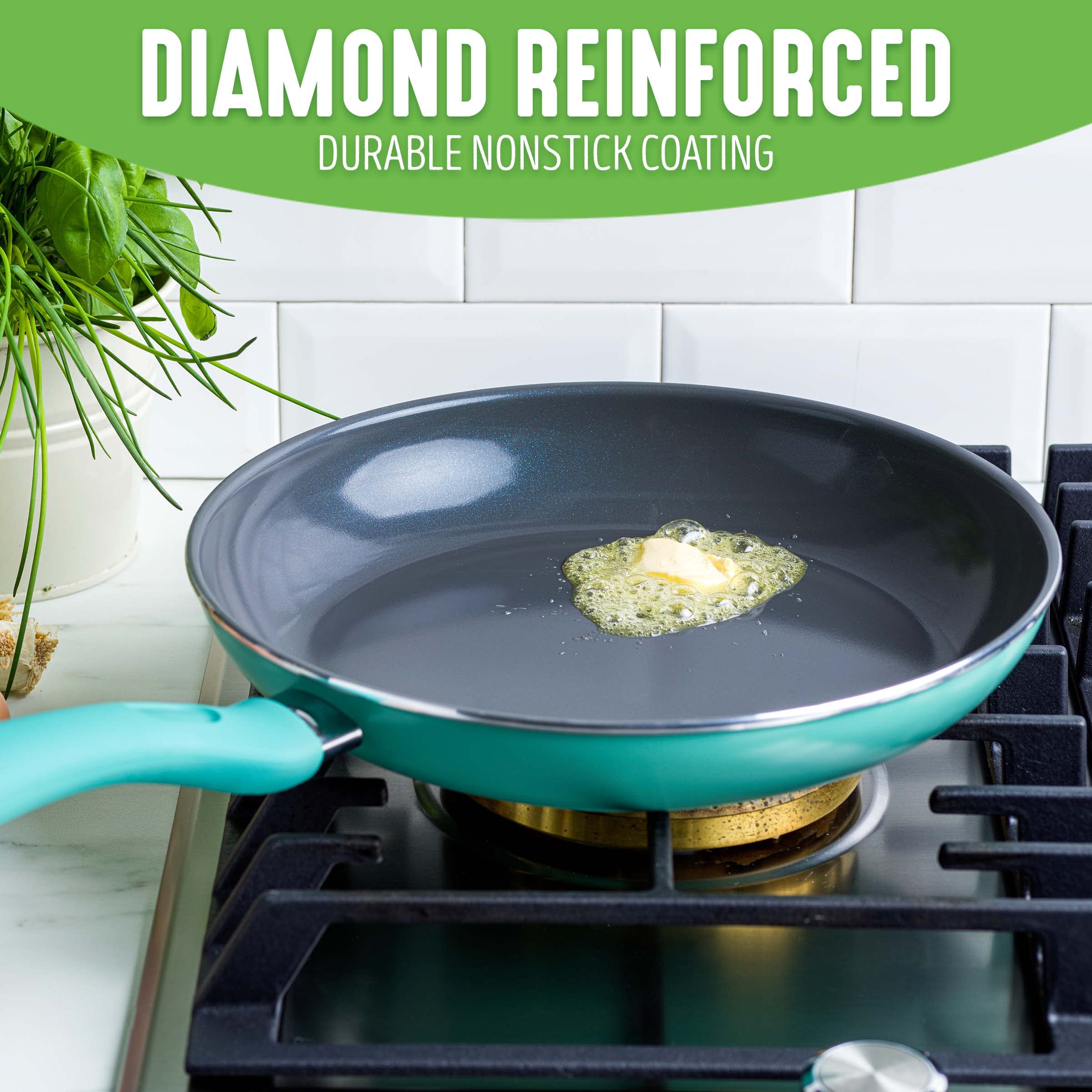 GreenLife Soft Grip Diamond Healthy Ceramic Nonstick, 7" and 10" Frying Pan Skillet Set, PFAS-Free, Dishwasher Safe, Turquoise