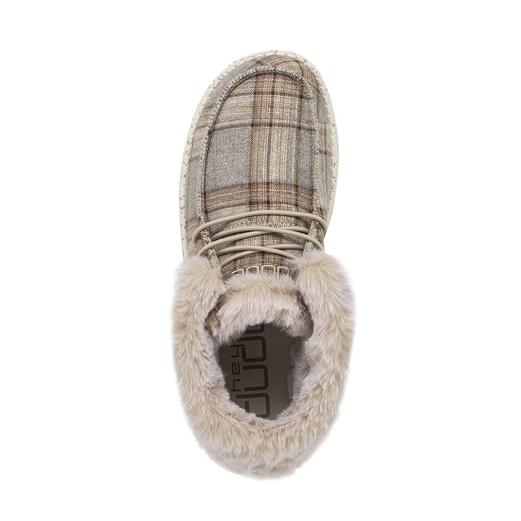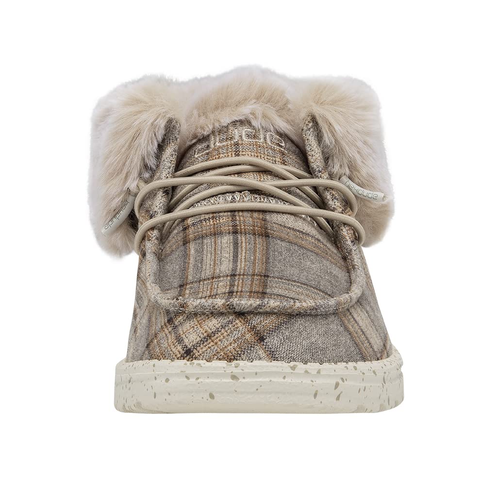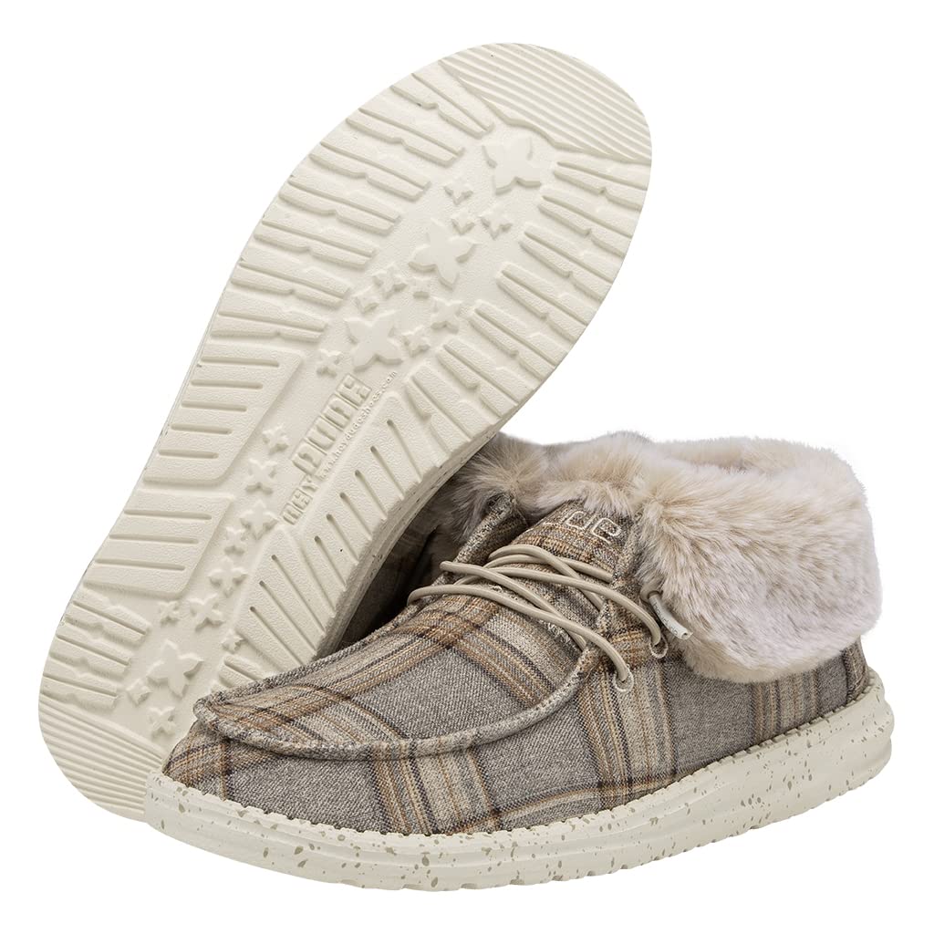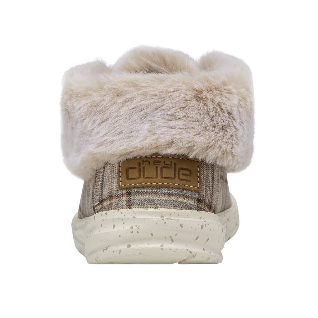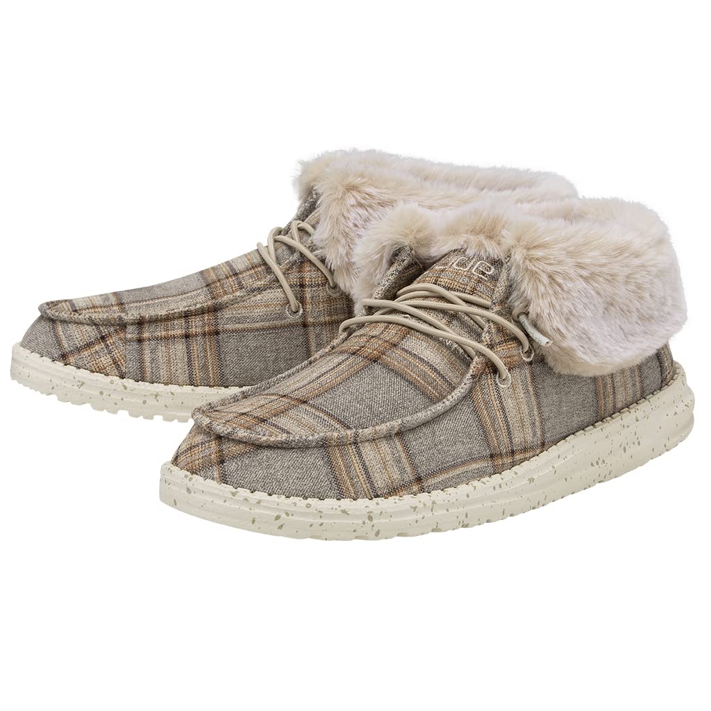 - Always be in relax mode with the Hey Dude Britt boot. Durable canvas uppers feature a foldable cuff with faux fur for warmth and comfort.