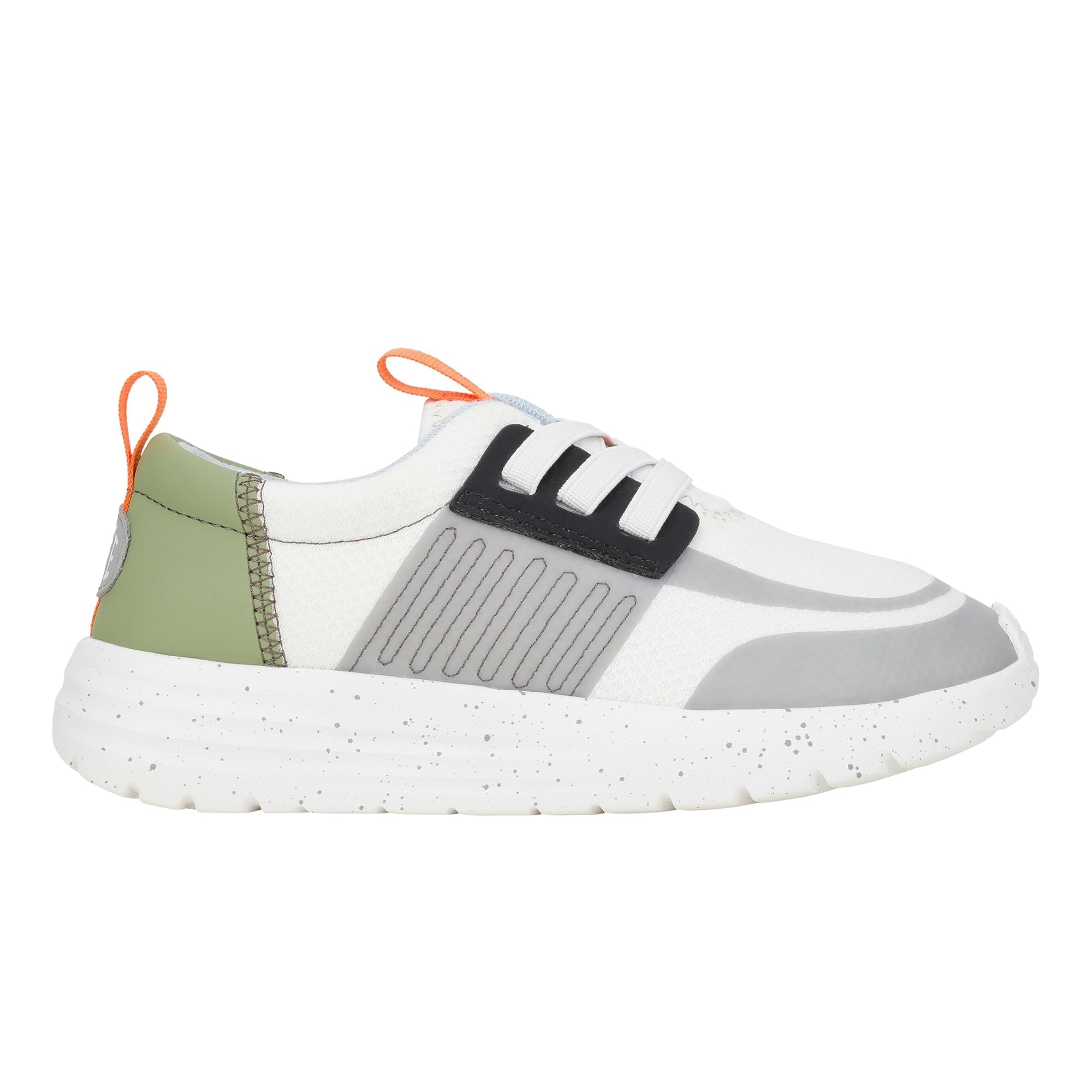 HEYDUDE Men's Kid Sirocco Play Colorblock (Little Kid/Big Kid), White/Grey/Olive, 2 Medium