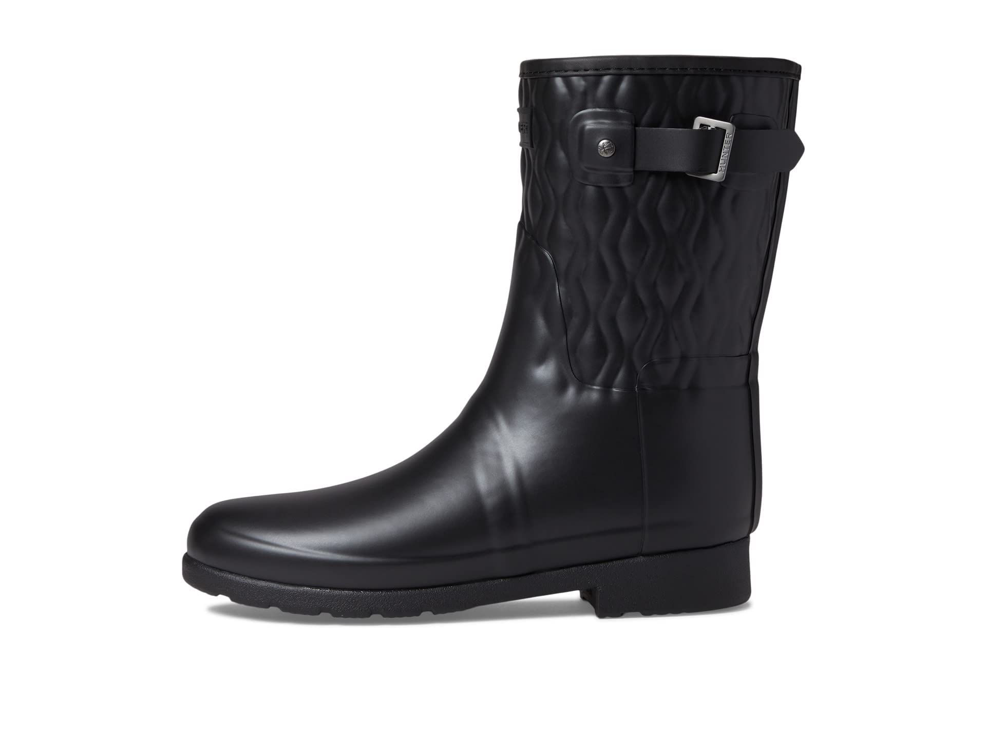 Hunter Refined Short Vertical Quilt Boots for Women - Synthetic Upper, Classic Round Toe Silhouette, and Textile Lining Black 10 M