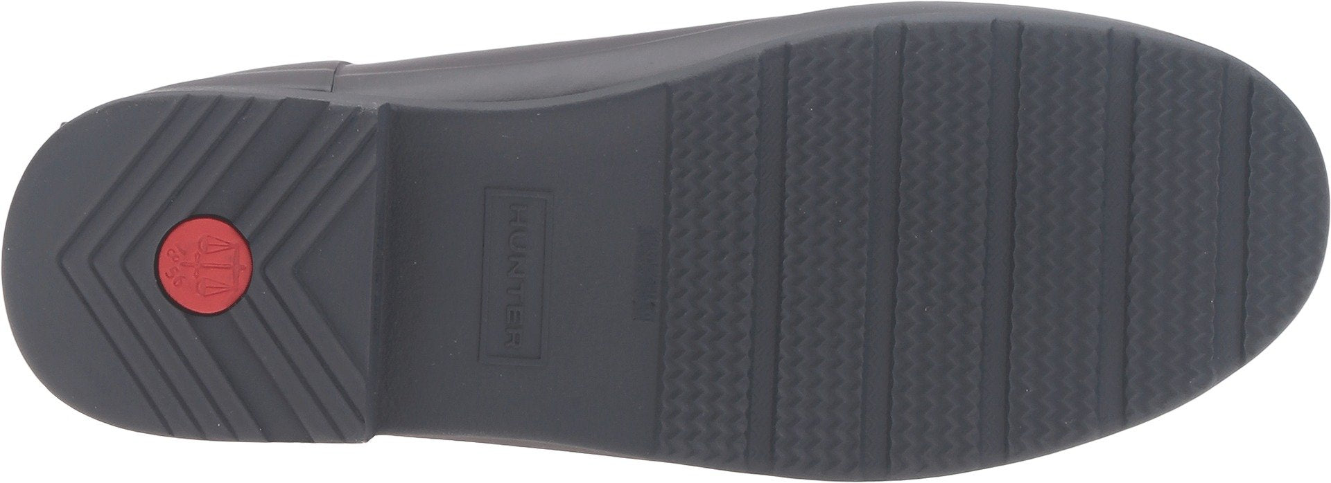 Details: Hunter Size Chart Note: Select your US size. Please be advised, the product and box will display UK, US and Euro sizing. For US sizing, both men's and women's sizing is displayed. Men's sizing is represented by "M" and women's sizing is represented by "F". Have a polished look to your wellies this season with the slimline design of the Original Refined Short. This product is certified vegan and is constructed with no animal parts for materials or bindings. Vulcanized natural rubber construction. Slim fit. Pull-on construction. Please keep in mind that the buckle on this boot is merely decorative and should not be used as an aid to pull the boot on. Quick dry woven nylon lining. Multi-layer cushioned sponge insole. Round toe. Traditional calendared natural rubber sole. The brand advises that a white wax film may appear on the surface of the rubber boots and that it can be wiped off with a damp cloth. This "blooming" effect is not a defect. Blooming is caused when the boots are exposed to extreme temperatures or temperature swings and the wax helps prevent the rubber from weathering. Imported. Measurements: Heel Height: 1 in Weight: 1 lb 5 oz Circumference: 13 1⁄4 in Shaft: 9 in Product measurements were taken using size 8, width M. Please note that measurements may vary by size. Weight of footwear is based on a single item, not a pair.